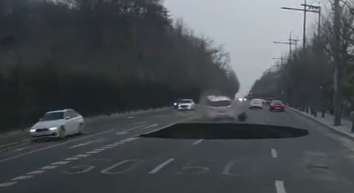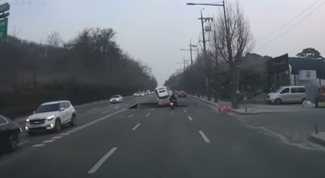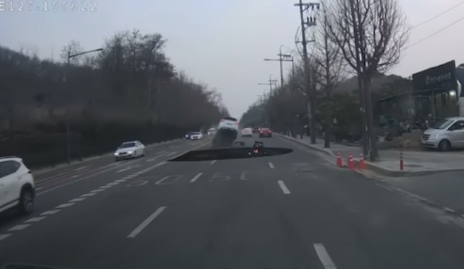 3월 24일 강동구 명일동 교차로에서 싱크홀 발생 오토바이 운전자 한명이 싱크홀에 빠진 것으로 확인