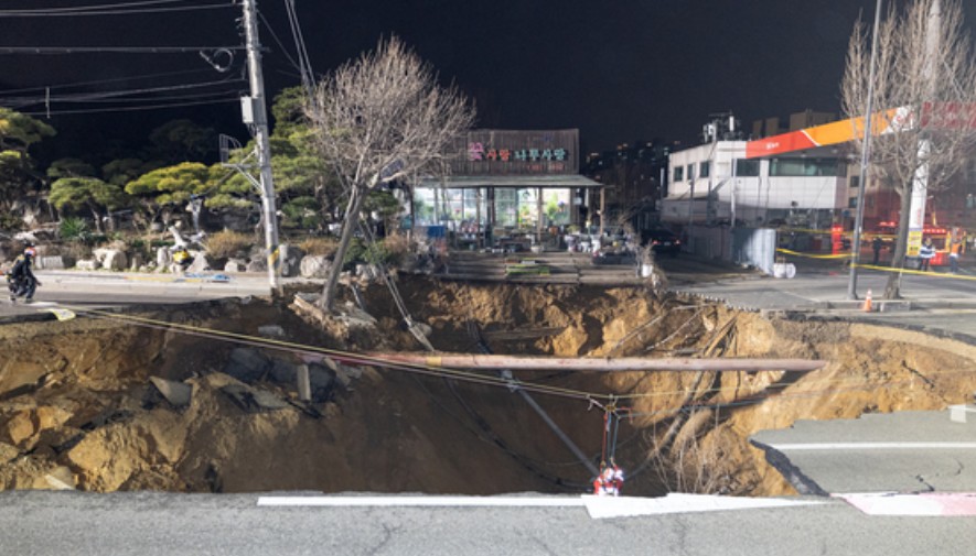 2025년 3월 24일 오후 6시 29분경, 서울특별시 강동구 명일동 대명초교입구교차로에서 거대한 싱크홀이 발생하여 5차선 도로가 완전히 함몰되는 사고가 발생했습니다. 사고는 오후 6시 28분, 블랙박스 영상에 의해 목격된 바에 따르면, 흰색 카니발 차량 1대와 오토바이 1대가 도로를 지나가던 중 첫 번째 붕괴가 일어났습니다. 카니발 차량의 후륜이 싱크홀에 빠져 기울어진 채로 전륜이 가속하면서 차량이 솟아오르듯 싱크홀 밖으로 튕겨져 나왔으나, 그 뒤에 있던 오토바이는 그대로 구멍 속으로 추락한 것으로 확인되었습니다.