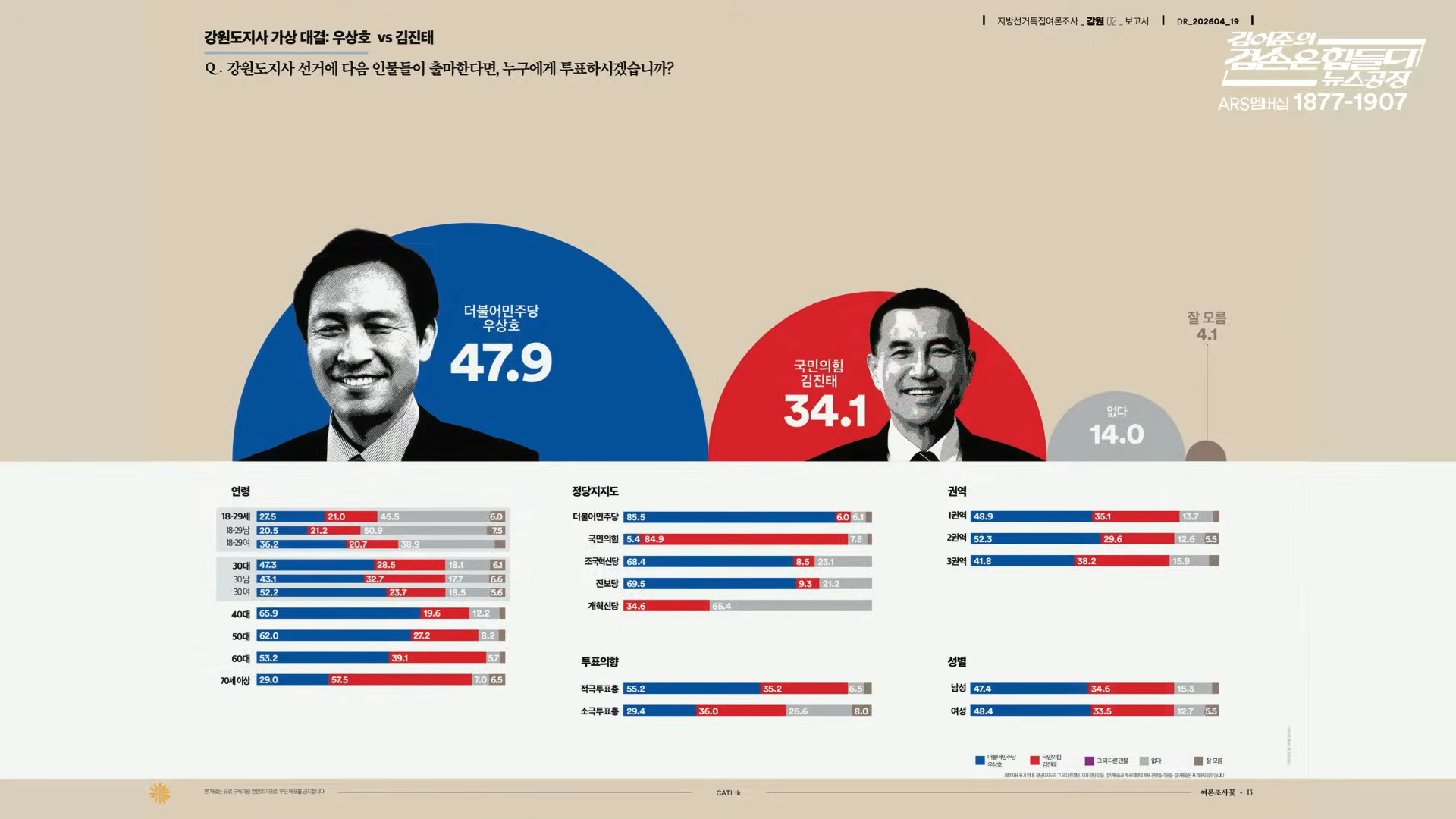 강원도지사 여론조사|지지율|우상호 김진태 후보 나이 고향|역대 지사