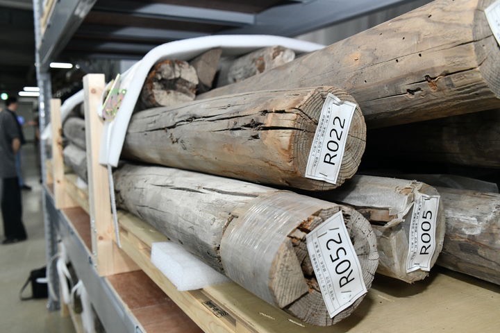 이렇게 해체된 관월당의 부재들은 현재 경기도 파주에 있는 전통건축수리기술진흥재단 수장고에 보관되어 있습니다. 건물 일부는 일본에서 사용되는 과정에서 일본식 구조로 변형된 부분도 있지만, 전체적으로는 원래의 단청과 문양이 상당히 잘 남아 있는 것으로 알려졌습니다. 특히 암막새 기와에는 용과 박쥐, 거미, 귀면 등의 문양이 새겨져 있으며 단청에는 운보문과 만자문 등 다양한 장식이 남아 있습니다. 이러한 요소들은 건물의 위계가 상당히 높았음을 보여주는 특징으로 평가됩니다.