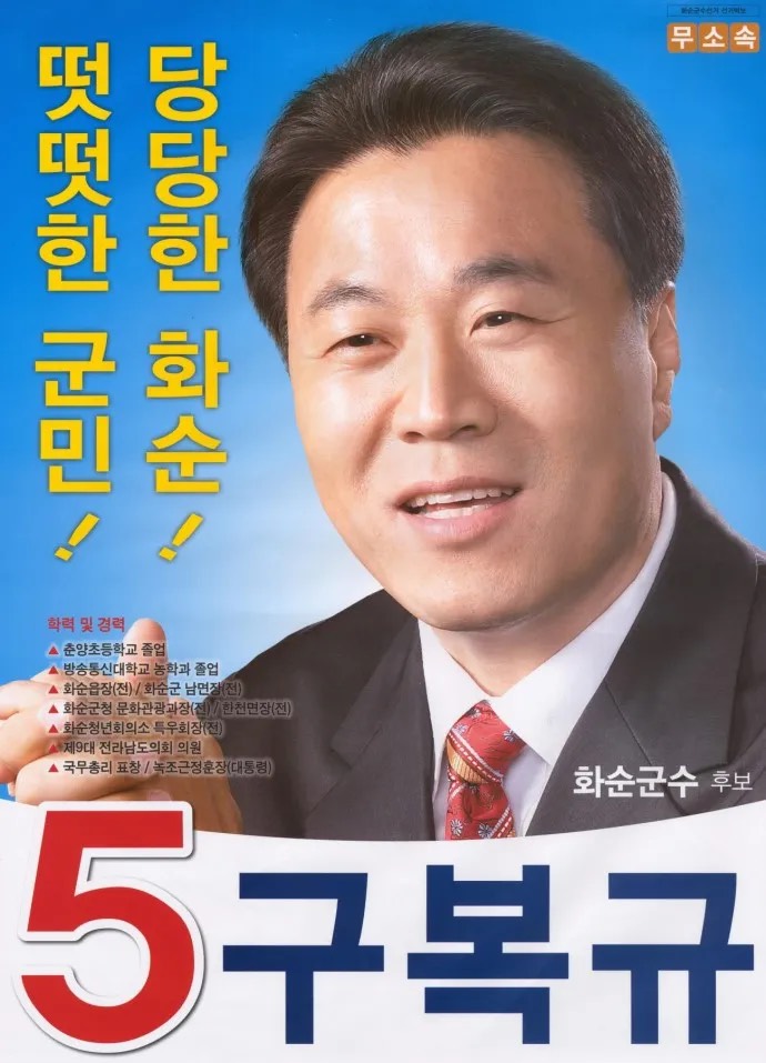 구복규 화순군수는 전남 화순에서 태어나 평생을 고향과 함께해 온 토박이 정치인으로, 지역 행정의 다양한 현장을 두루 거치며 군민과 가장 가까운 곳에서 소통해 온 인물이라고 전해집니다. 어릴 때부터 화순에서 자라나 공직자로 첫발을 내디딘 뒤 읍·면장과 군청 실무 책임자로 일하며 지역 문제를 몸으로 익혔고, 이러한 경험을 바탕으로 정치에 입문해 도의원을 거쳐 마침내 화순군수에 당선되었다고 합니다. 2022년 지방선거에서는 75%가 넘는 압도적 지지를 받으며 군민들이 그에게 보낸 신뢰를 확인했고, 취임 후에는 ‘화순을 새롭게, 군민을 행복하게’라는 목표 아래 소통 행정과 문화·경제 융합 발전을 꾸준히 추진해 왔다고 전해집니다. 지역의 옛 이미지에서 벗어나 새로운 성장 동력을 마련하기 위해 노력해 왔으며, 관광 활성화와 산업 다변화를 중심으로 미래 화순의 기반을 다지는 데 힘써 왔다고 합니다. 그러나 2025년 불법 당원 모집 관련 징계를 받으며 정치적 변수에 맞닥뜨리게 되었고, 재심을 통해 사실관계를 바로잡겠다는 입장을 밝히며 군민들에게 심려를 끼친 데 대해 사과했다고 합니다. 임기 마지막을 향해가는 지금, 그는 군정에 더욱 전념하며 남은 시간 동안 군민이 체감할 변화와 성과를 이루겠다는 의지를 보이고 있다고 전해집니다.
