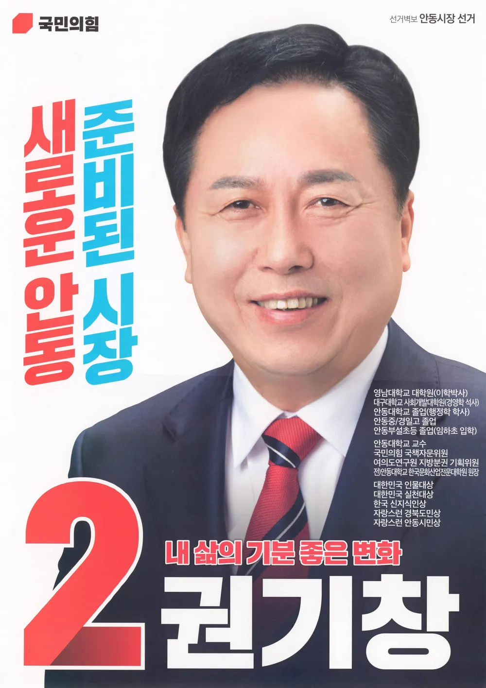 권기창 안동시장은 교육계와 행정 분야를 두루 거친 학자 출신 정치인으로, 현재 경상북도 안동시의 발전을 이끌고 있는 인물로 알려져 있습니다. 그는 평생을 지역과 시민을 위해 헌신하며, 안동을 새로운 성장 중심지로 도약시키겠다는 확고한 비전을 가지고 있습니다. 교육자 시절부터 지역 인재 양성과 문화 발전에 힘써왔고, 시장 취임 이후에는 미래 산업 육성과 도시재생, 청년 정책 등에 집중하며 변화와 혁신의 시정을 펼치고 있습니다. 권 시장은 “위기의 안동을 기회의 안동으로”라는 기치 아래 시민과의 소통을 무엇보다 중요시하고, 공정하고 따뜻한 행정을 통해 신뢰받는 지방정부를 만드는 데 주력하고 있습니다. 또한 문화와 전통, 산업이 조화를 이루는 지속 가능한 도시를 목표로, 안동의 역사와 정체성을 지키면서도 세계로 나아가는 발전 전략을 추진하고 있습니다. 그의 행정철학은 ‘시민 중심, 미래 중심, 현장 중심’으로 요약되며, 이는 모든 정책의 근간이 되고 있습니다. 지역의 변화와 성장을 위해 쉼 없이 달려온 권기창 시장의 발자취는 안동의 새로운 시대를 여는 원동력으로 평가되고 있습니다.