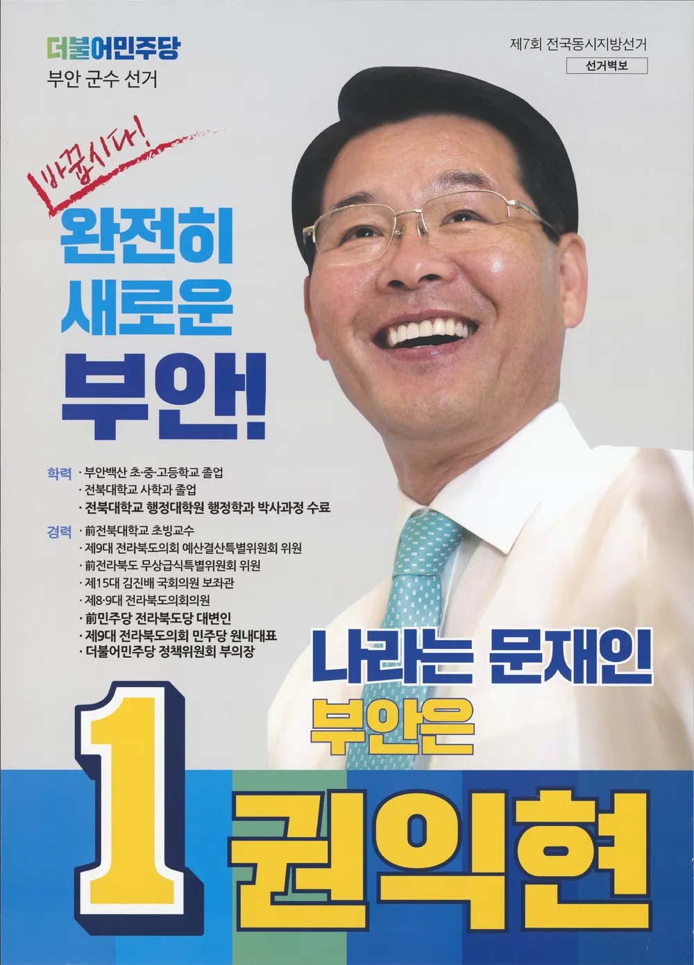 전북 부안군수 / 더불어민주당 / 당선 / 초선