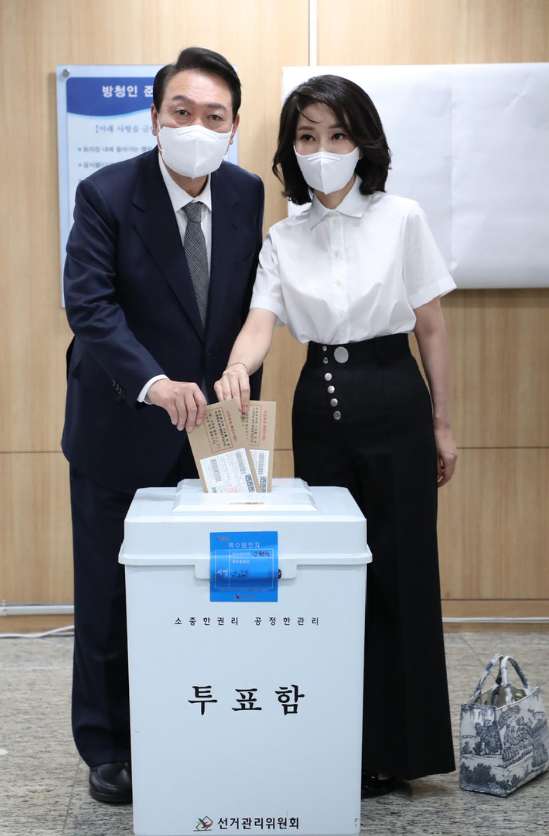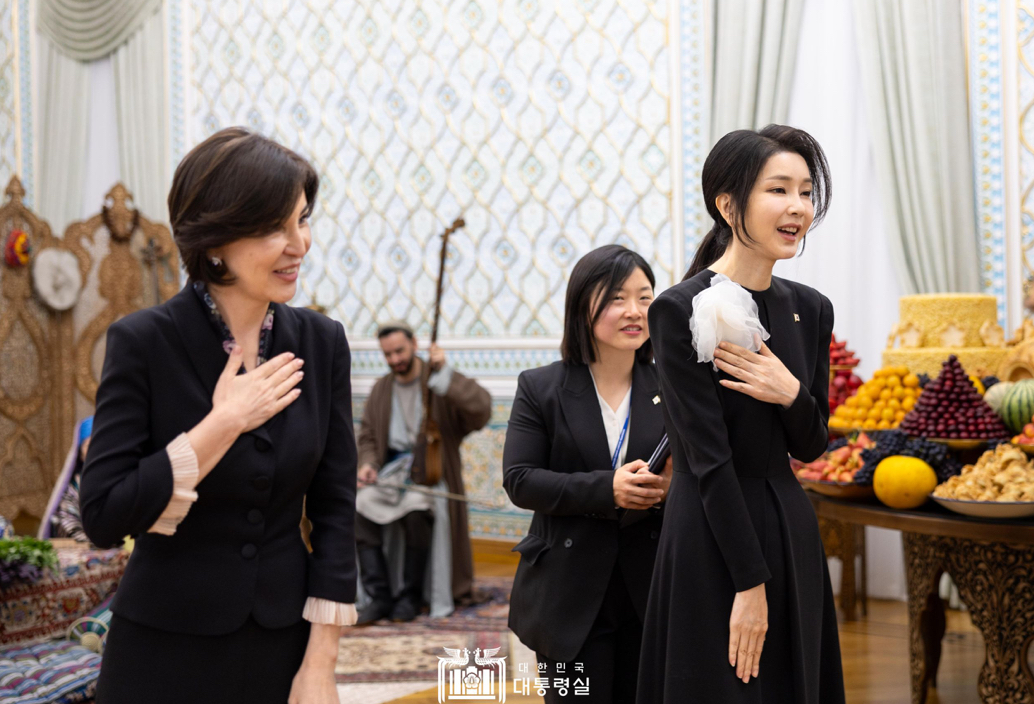 2022년 3월 10일, 남편 윤석열이 대한민국 제20대 대통령에 당선되었고, 5월 10일부터 김건희는 대한민국 대통령 배우자로서의 역할을 시작했습니다. 동아일보와의 인터뷰에서 김건희는 영부인보다는 ‘대통령 배우자’라는 표현이 좋다고 밝혔습니다. 2022년 4월 4일, 김건희는 자택을 경호하는 경찰특공대와 인사를 나누고, 폭발물 탐지견과 함께 찍은 사진이 공개되었습니다. 2022년 5월 3일, 김건희는 첫 공개 행보로 천태종의 총본산인 단양 구인사를 방문했습니다. 이는 윤석열이 대선 후보 시절에 약속한 재방문을 대신한 것이었습니다. 2024년 5월 21일, 김건희는 청와대 춘추관에서 열린 ‘희망을 그리는 아이들: 우크라이나 아동 그림전’에 참석하여 우크라이나 어린이들의 그림을 관람했습니다. 이 자리에서 김건희는 우크라이나 전쟁의 참혹함을 직접 느꼈으며, 생명 존중과 평화의 중요성을 강조했습니다. 2024년 5월 29일, 김건희는 용산 대통령실에서 열린 무함마드 빈 자에드 알 나흐얀 UAE 대통령의 국빈 방한 환영식에 참석했습니다. 또한, 2024년 9월 19일, 윤석열 대통령과 함께 체코 공식 방문을 위해 출국했습니다.