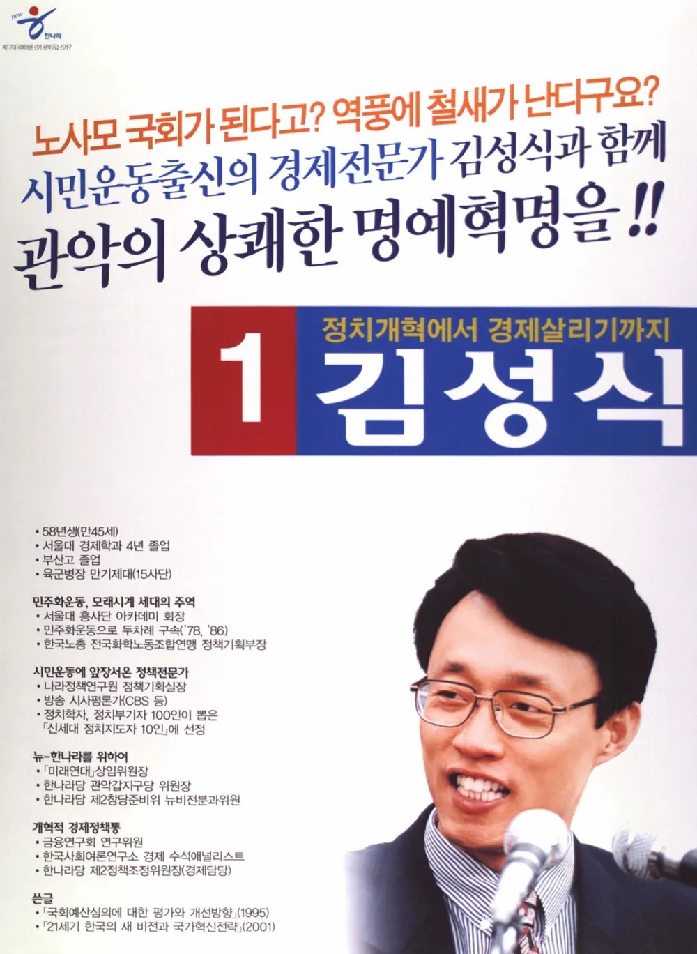 출소 이후에는 연구자와 정책 전문가의 길을 걸으며 사회과학 연구소와 정책 연구기관에서 활동했고, 언론과 방송을 통해 경제와 사회 현안을 해설하는 역할도 수행했습니다. 이러한 경험을 바탕으로 정치권에 도전했으며, 초기에는 여러 차례 선거에서 낙선의 고배를 마셨지만 정치에 대한 문제의식을 놓지 않았다고 합니다. 민중당, 통합민주당, 한나라당 등 다양한 정치적 공간을 거치며 그는 스스로를 특정 진영에 가두기보다 현실 정치 속에서 개혁의 가능성을 모색해왔다고 전해집니다.