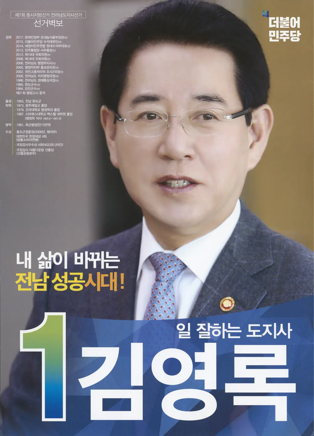 전라남도지사 / 더불어민주당 / 당선 / 재선