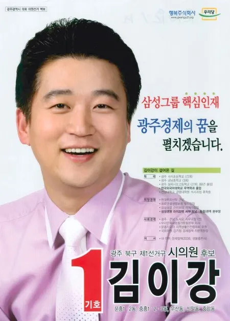 2006년, 김이강 청장은 열린우리당 소속으로 제6회 전국동시지방선거에 출마하여 광주 북구 제1선거구에서 도전장을 내밀었지만 아쉽게도 낙선의 고배를 마셨습니다. 그러나 그 경험은 그에게 더 단단한 정치적 내공을 쌓게 해주는 계기가 되었다고 전해집니다.