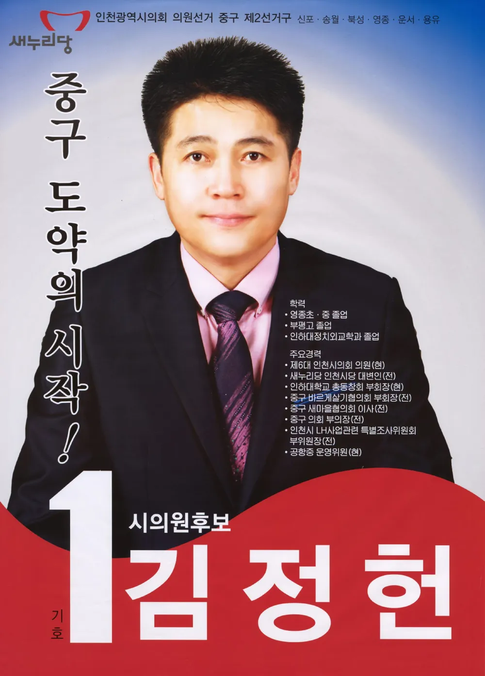 김정헌 인천 중구청장 프로필|나이|고향|소속 정당|종교|재산|후보