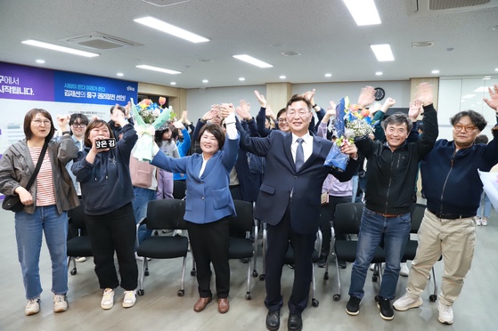 선거 결과 김 청장은 국민의힘의 무공천 방침 속에서 무소속 후보를 15% 이상 큰 격차로 제치며 당선되었습니다. 2024년 4월 11일 취임식 후 첫 일정으로 보훈공원을 참배하고, 각 부서를 돌며 직원들에게 “주민을 위한 행정의 새 출발”을 다짐했습니다.