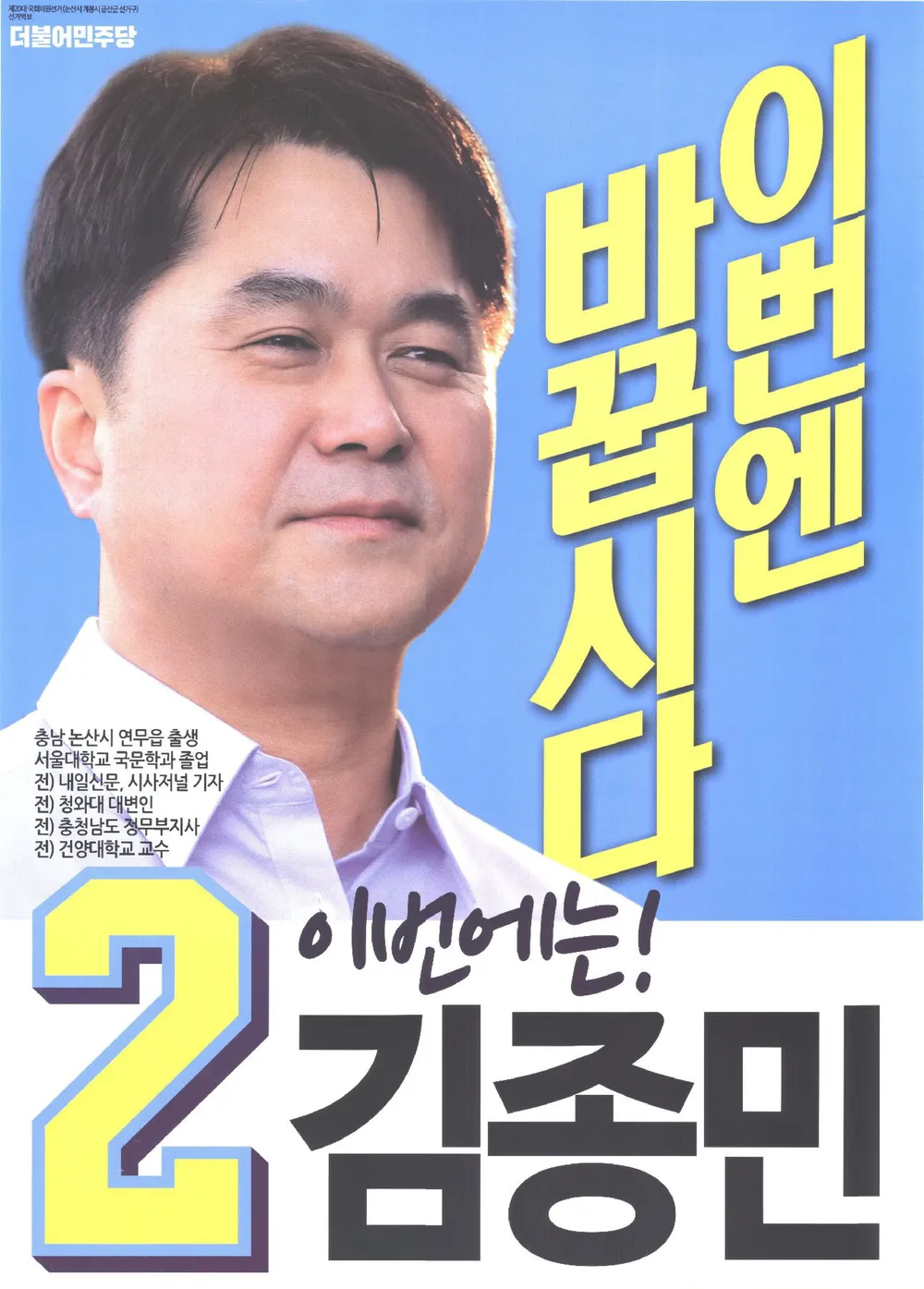 충남 논산·계룡·금산 / 민주통합당 / 낙선 2016년