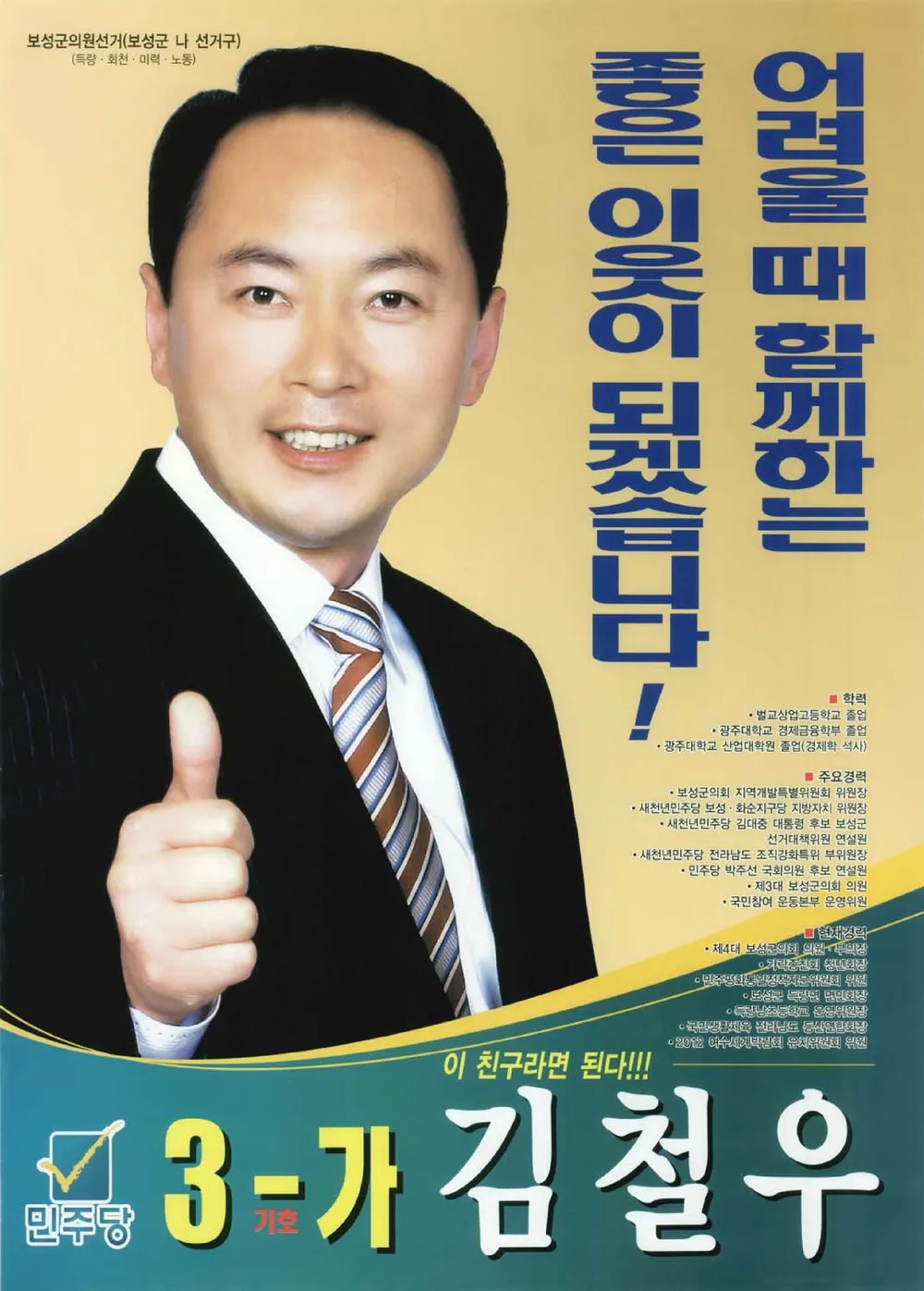 정치에 첫발을 내디딘 것은 1998년 제2회 전국동시지방선거였습니다. 김철우는 무소속 후보로 제3대 보성군의회 의원 선거에 출마해 당선되며 본격적인 공직 생활을 시작했습니다. 이후 2002년 지방선거에서도 다시 무소속으로 제4대 보성군의회 의원에 당선되었고, 임기 동안 군의회 부의장을 맡아 의정 운영 전반을 경험했습니다. 이 시기 그는 지역 현안을 조율하고 행정과 의회의 관계를 정리하는 역할을 수행하며 정치적 입지를 차근차근 다져갔습니다.
