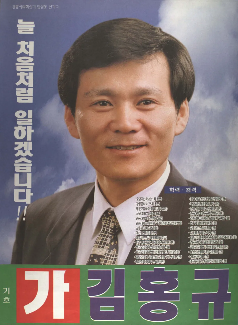 김 시장의 정치 인생은 1995년 제1회 전국동시지방선거에서 무소속 후보로 강릉시의회 입암동 선거구에 도전하면서 시작되었습니다. 비록 그때는 낙선했지만, 같은 해 10월 11일 보궐선거에서 다시 무소속으로 출마하여 시의원에 당선되며 정치에 첫 발을 내딛게 됩니다.