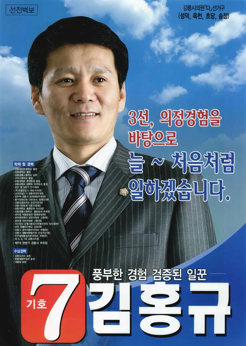 강원 강릉 성덕동 / 무소속 / 무투표 당선 / 3선