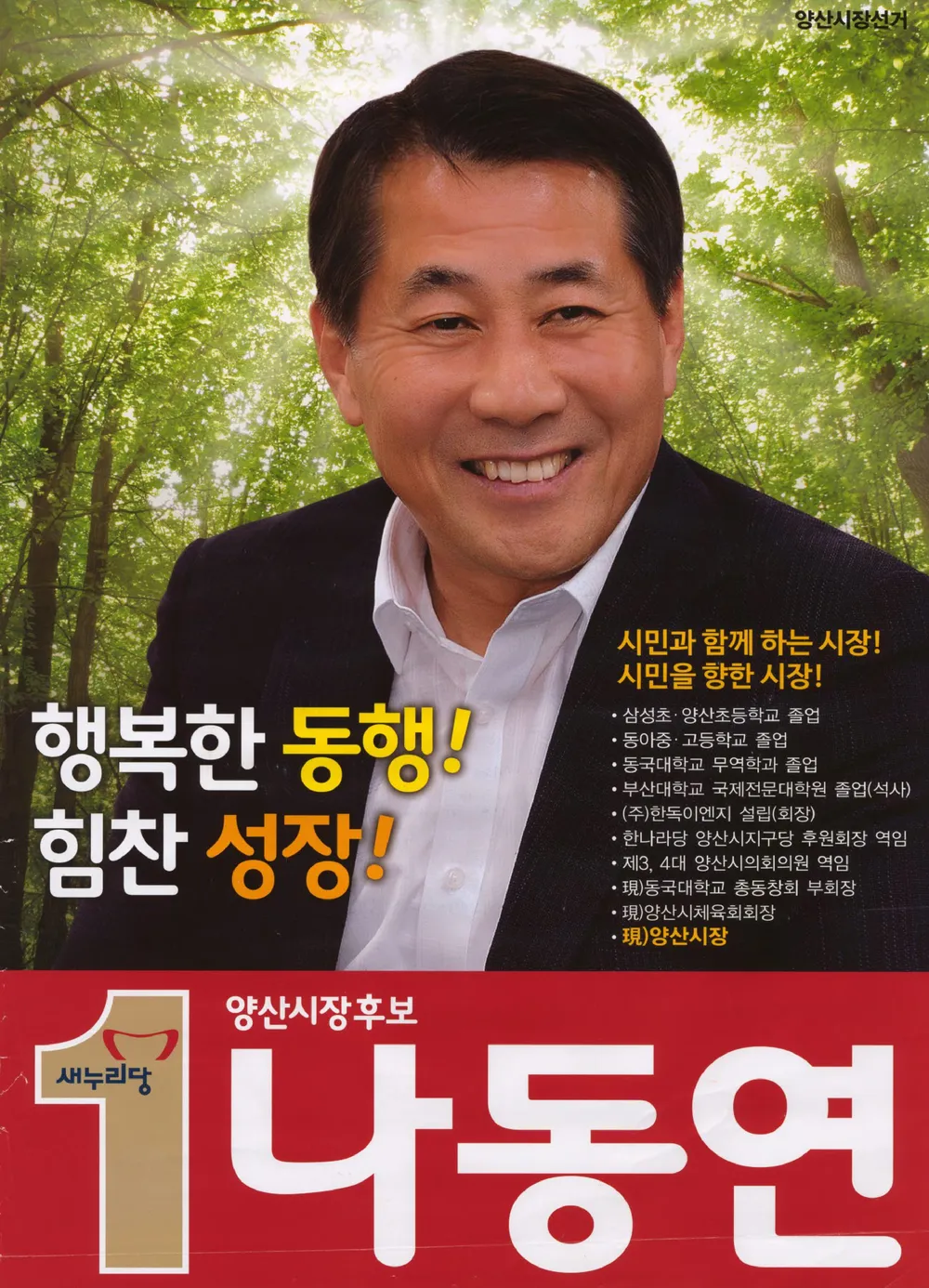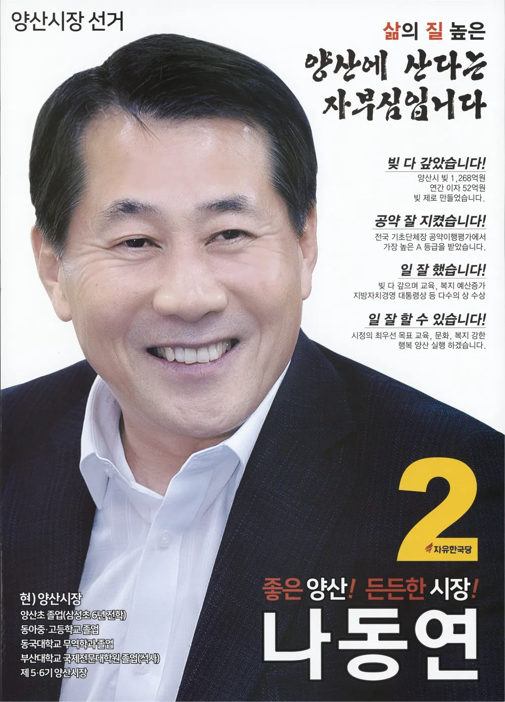 나동연 경남 양산시장 프로필|소속 정당|임기|나이|고향|후보|학력