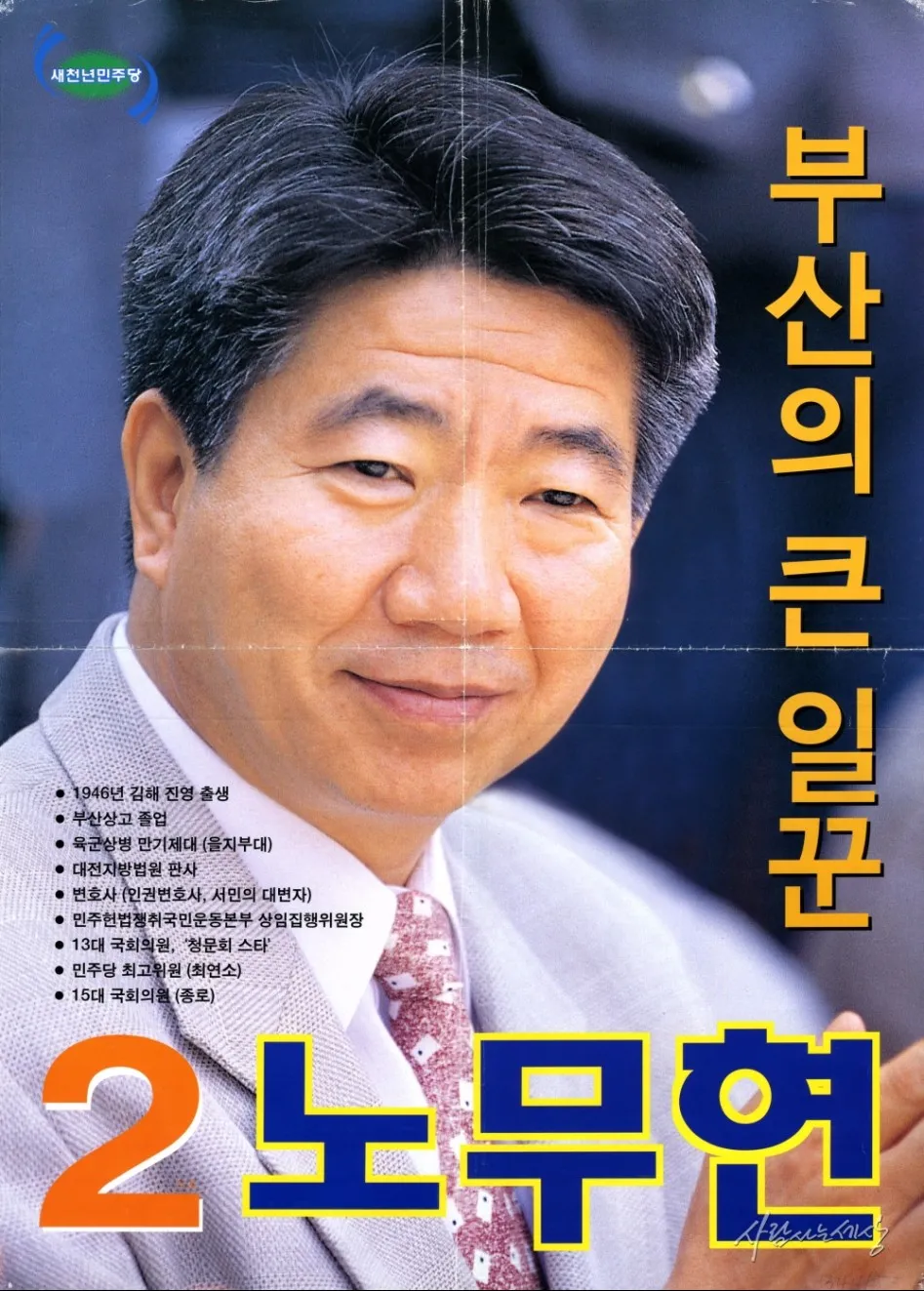 노무현은 판사로 재직한 지 2년 만에 사직하고 부산에서 인권 변호사의 길을 걷기 시작합니다. 당시 그는 부림사건을 포함한 여러 민주화운동 관련 사건의 피의자들을 변호하며, 권위주의 정권에 맞선 시민들의 권리를 지키는 데 앞장섭니다. 정치에 입문한 것은 1988년 제13대 국회의원 선거에서였습니다. 평민당 후보로 부산 동구에 출마해 낙선했지만, 같은 해 재보궐선거를 통해 드디어 국회에 입성합니다. 이후 그는 '청문회 스타'로 떠오르며 국민의 눈에 강렬한 인상을 남깁니다.