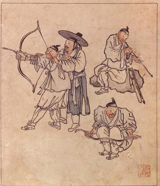 김홍도의 가계는 대대로 무관직을 지낸 중인 집안이었습니다. 부친 김석무와 모친 인동 장씨 사이에서 태어났으며, 외가 쪽은 화원을 많이 배출한 집안이었다고 전해집니다. 이러한 배경은 그가 일찍이 그림 세계에 발을 들이는 데 영향을 주었을 것으로 짐작됩니다. 그의 유년 시절에 대한 구체적인 기록은 많지 않지만, 어린 시절부터 예술적 재능이 두드러졌으며 당대의 문인화가이자 감식가였던 강세황의 집을 드나들며 화법을 배웠다고 합니다. 강세황은 시·서·화에 모두 능했던 인물로, 김홍도의 재능을 높이 평가하며 적극적으로 후원했다고 전해집니다.