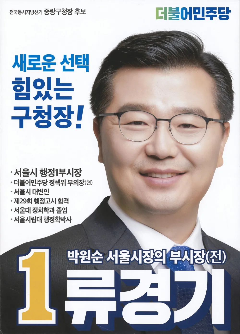 류경기 중랑구청장 프로필|소속 정당|나이|고향|학력|경력|후보|