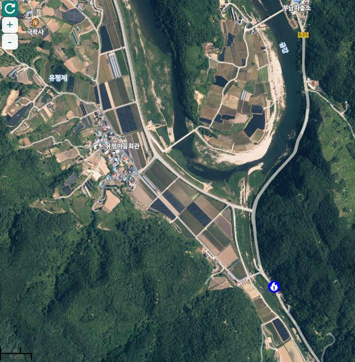 강한 서풍이 불고 있어 전북 무주 부남면에서 동쪽 방향힝 조항산 / 적상산 방향으로 진행 가능성 높음