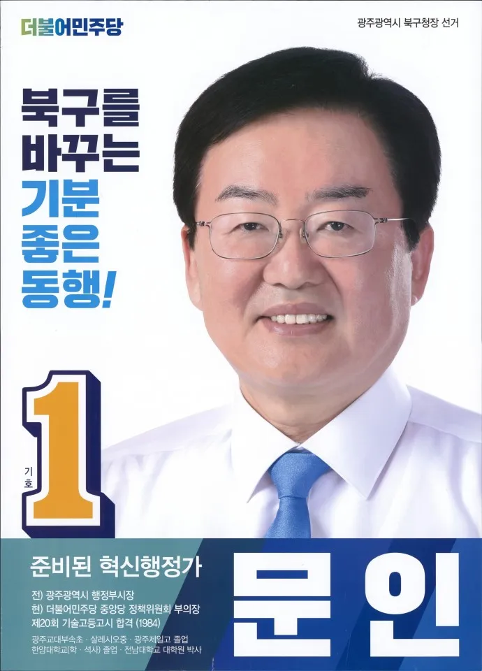 문인 광주 북구청장 프로필|소속 정당|임기|나이|고향|가족|학력