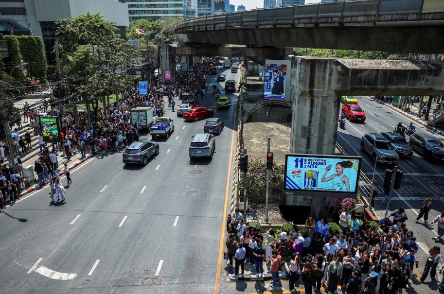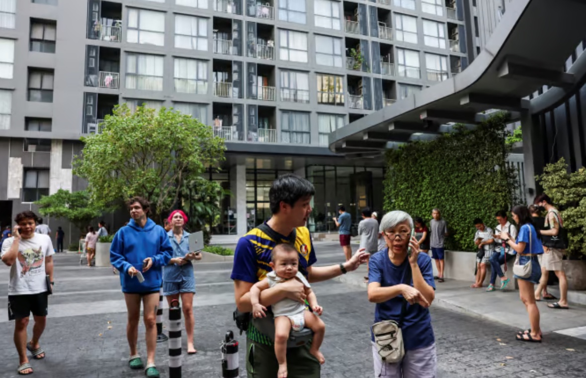 이날 태국 수도인 방콕에서도 강한 진동이 발생하였으며, 방콕의 중심 업무 지역에서는 건물이 흔들리는 현상이 관찰되었습니다. AP통신에 따르면, 이번 지진은 그 강도가 상당히 강력해 고층 건물의 수영장에서도 물이 튈 정도였다고 전해졌습니다. 방콕에는 약 1700만 명의 주민이 거주하고 있으며, 이들 중 상당수가 고층 아파트에서 생활하고 있습니다. 지진 발생 약 40분 후인 오후 1시 30분쯤에는 지진 경고가 울렸고, 이에 따라 고층 콘도와 호텔에 투숙 중인 사람들이 계단을 이용해 긴급히 대피했습니다. 이들은 뜨거운 한낮의 태양을 피하며 거리에서 대피하는 모습을 보였다고 AP는 전했습니다.
