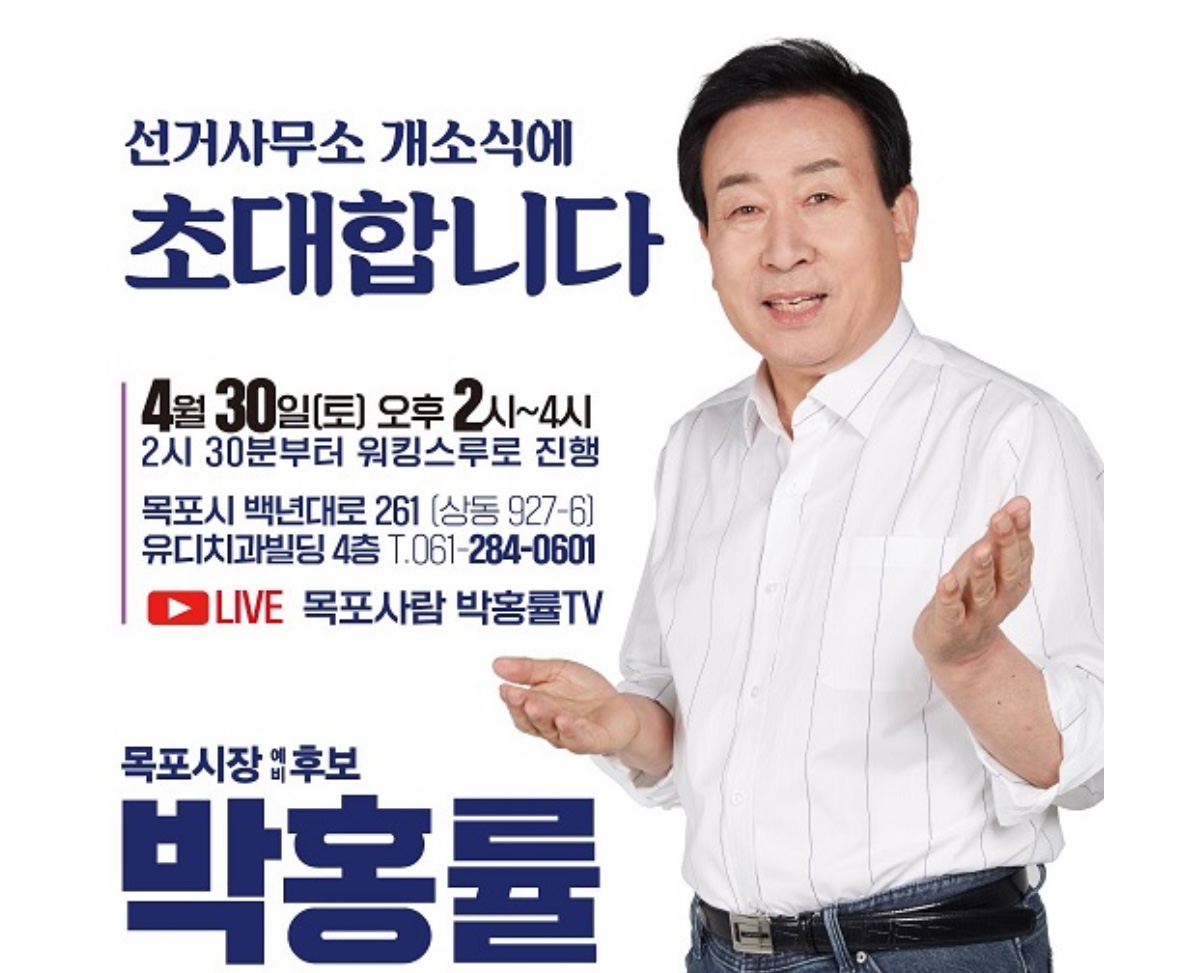 2022년 6월 1일 치러진 제8회 전국동시지방선거에서 박홍률은 57.38%의 득표율로 현직 시장인 더불어민주당 김종식 후보를 제치고 제41대 목포시장에 당선되었습니다.