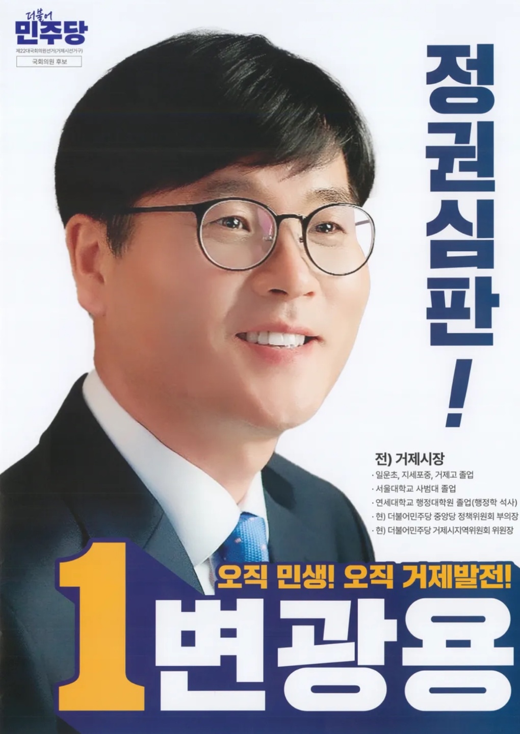 경남 거제시장 / 더불어민주당 / 당선 / 재선
