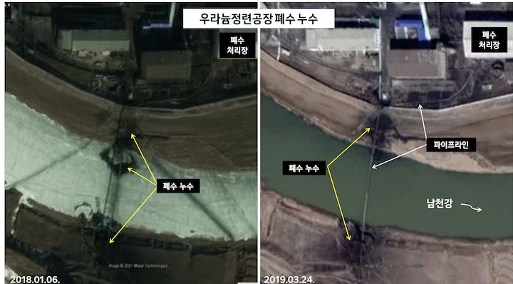 하지만 2022년경부터 침전지의 저장 용량이 포화 상태에 이르자, 북한은 이 방사성 폐수를 정화하지 않은 채 인근 소하천으로 방류하기 시작한 것으로 보입니다. 이러한 행위는 위성사진을 통해 포착되었으며, 국제사회의 우려를 낳고 있습니다.