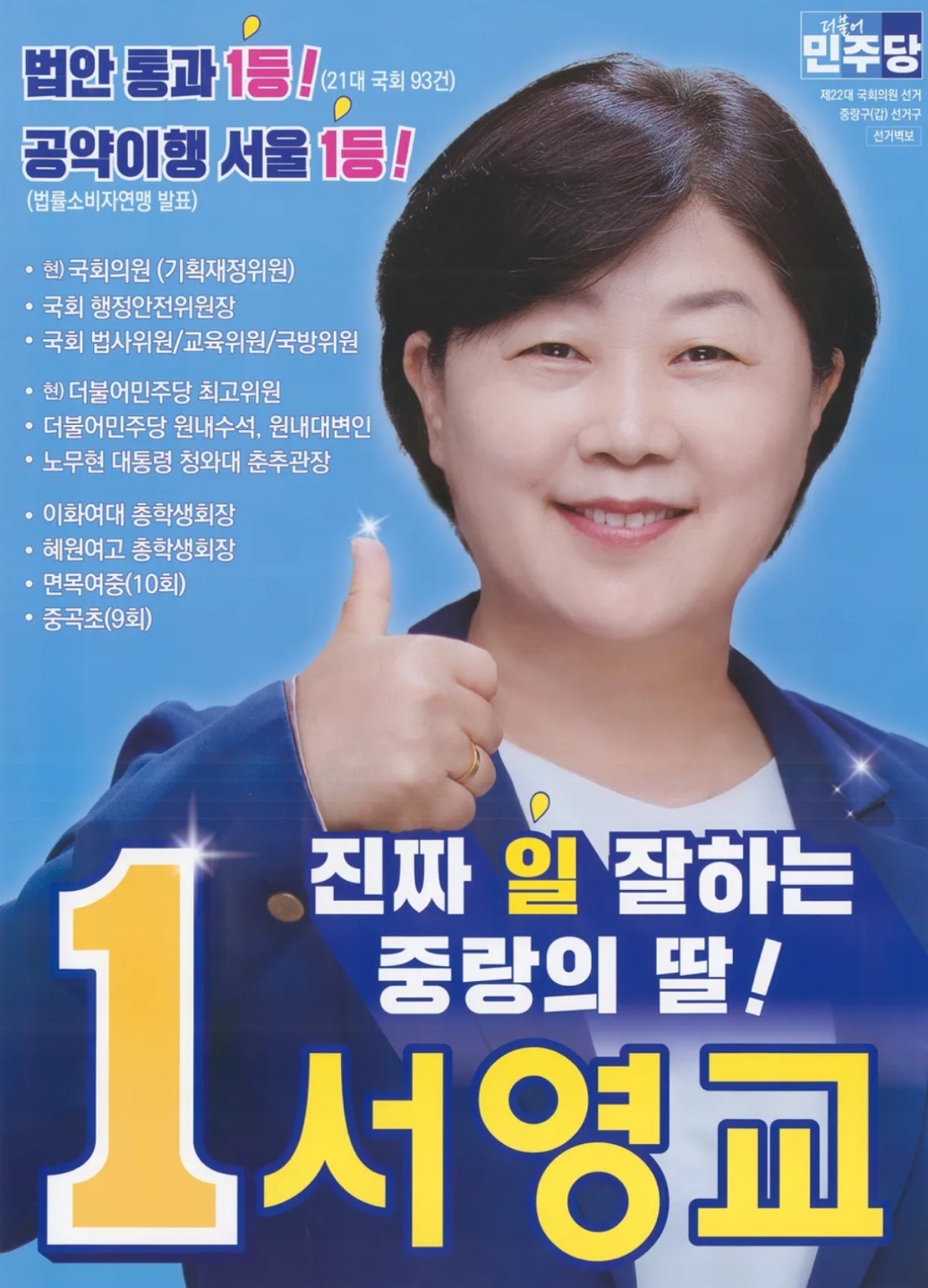 서울 중랑 갑 / 더불어민주당 / 당선 / 재선