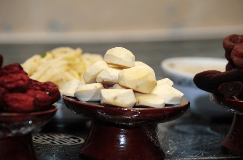 붉은 과일은 동쪽에, 흰색 과일은 서쪽으로 놓는다.