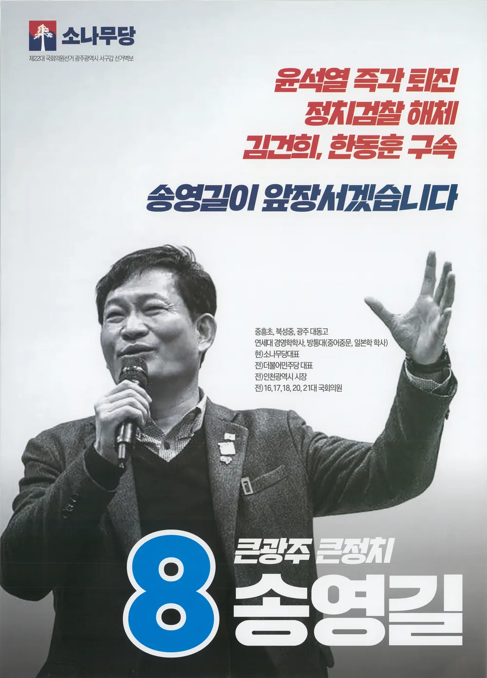 그가 창당한 ‘소나무당’이라는 이름처럼, 송영길은 거센 바람 속에서도 뿌리를 깊이 내리고 흔들리지 않기를 바라는 마음을 담아, 여전히 자신이 할 수 있는 정치적 소명을 모색하고 있습니다. 소나무처럼 늘 푸르게 서 있기를 바라는 그 이름처럼, 그는 이상과 현실의 거센 충돌 속에서도 시대와 국민을 향한 사명감을 놓지 않겠다는 다짐을 이어가고 있습니다.
