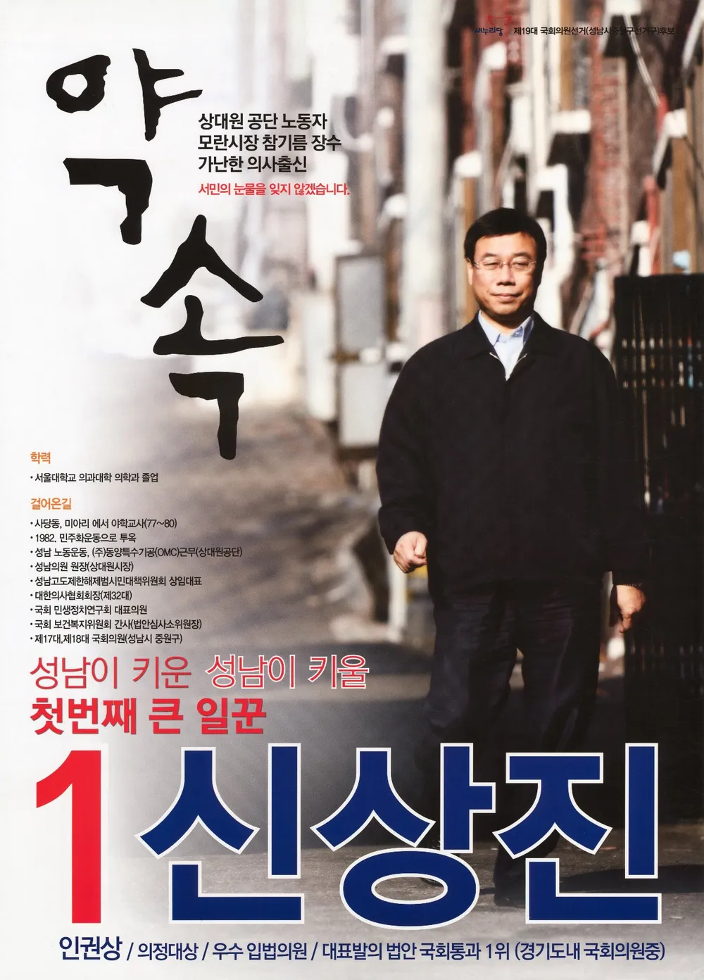 신상진 시장이 정치권에 본격적으로 이름을 알리게 된 계기 중 하나는 2001년부터 2003년까지 대한의사협회 회장을 지내며 의약분업에 반대해 삭발 시위를 주도한 일이었습니다. 이 사건은 그의 정치적 시각에 큰 영향을 주었으며, 이후 정치 활동의 출발점이 되었습니다. 흥미로운 점은, 당시 그를 기소했던 검사가 윤석열 전 대통령이었고, 변호인은 이재명 전 대통령이었다는 사실입니다.