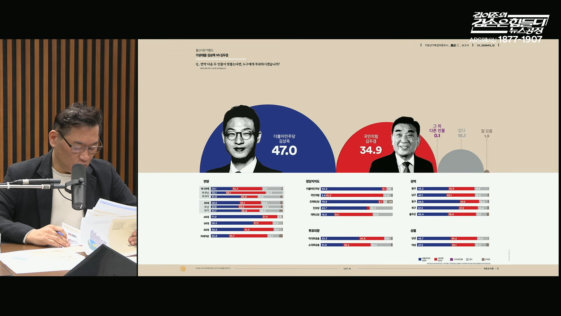 울산시장 여론조사|후보|지지율|김상욱 김두겸 김종훈|뉴스공장 꽃|