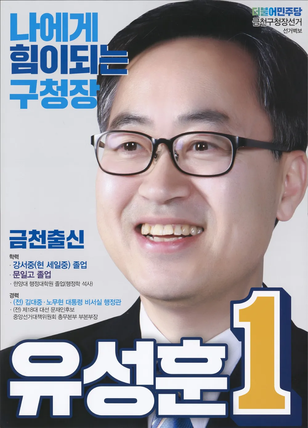 유성훈 금천구청장 프로필|나이|고향|소속 정당|학력|재산|후보|
