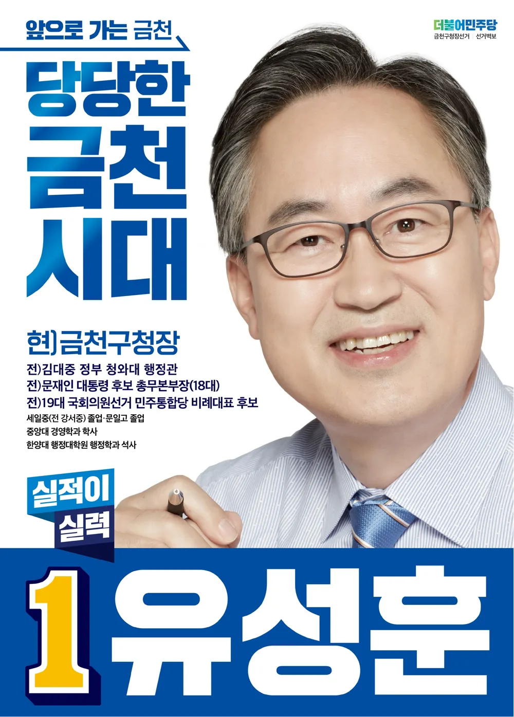 유성훈 금천구청장 프로필|나이|고향|소속 정당|학력|재산|후보|