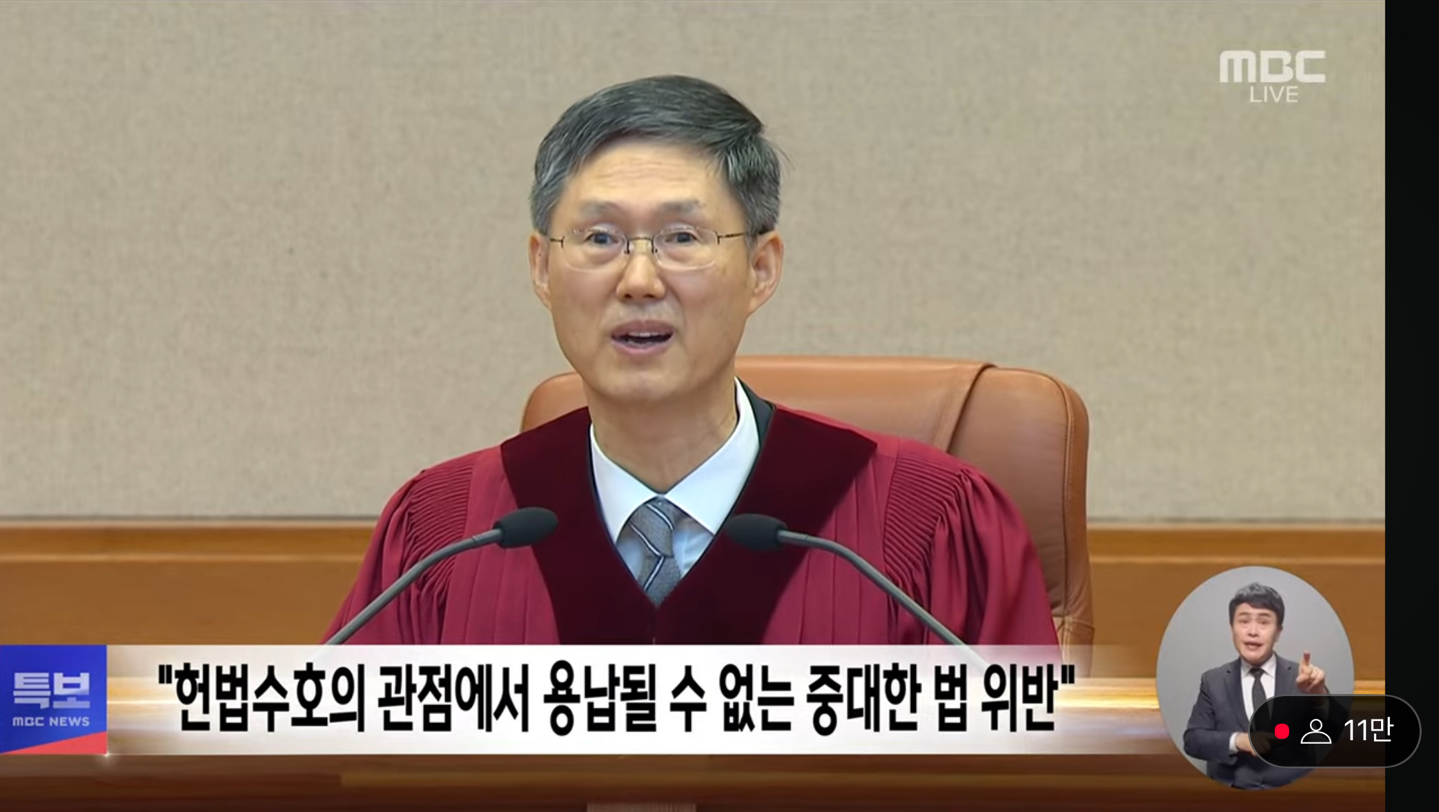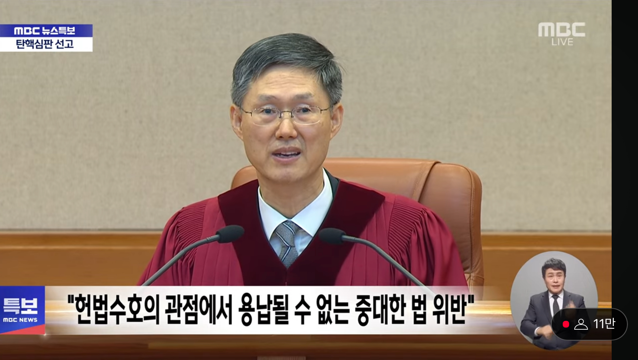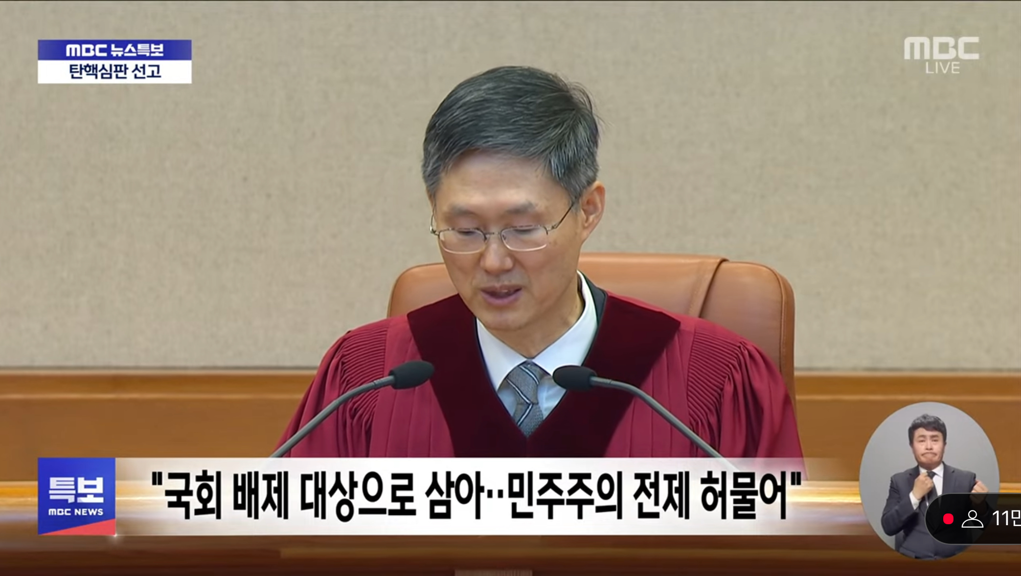 "피청구인 대통령 윤석열을 파면한다" 선고 영상