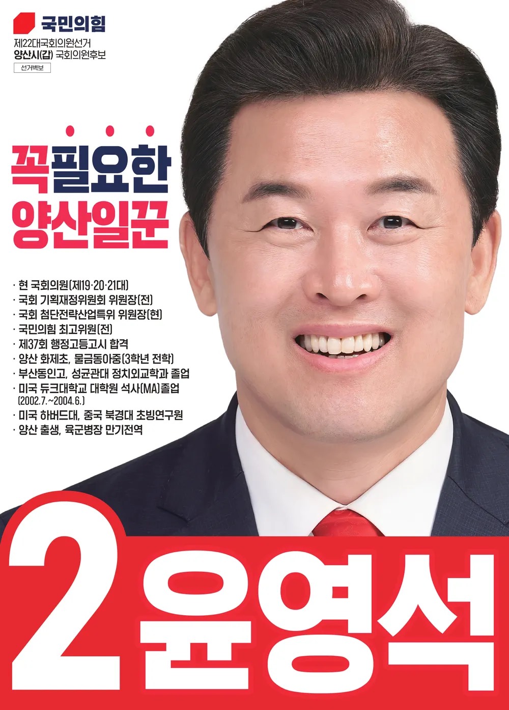 제22대 국회의원 (경남 양산시 갑 / 국민의힘 / 4선)