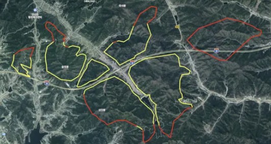 빨간선 : 화선 / 노란선 : 진화완료