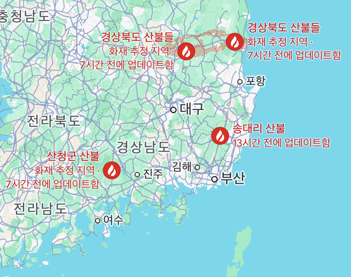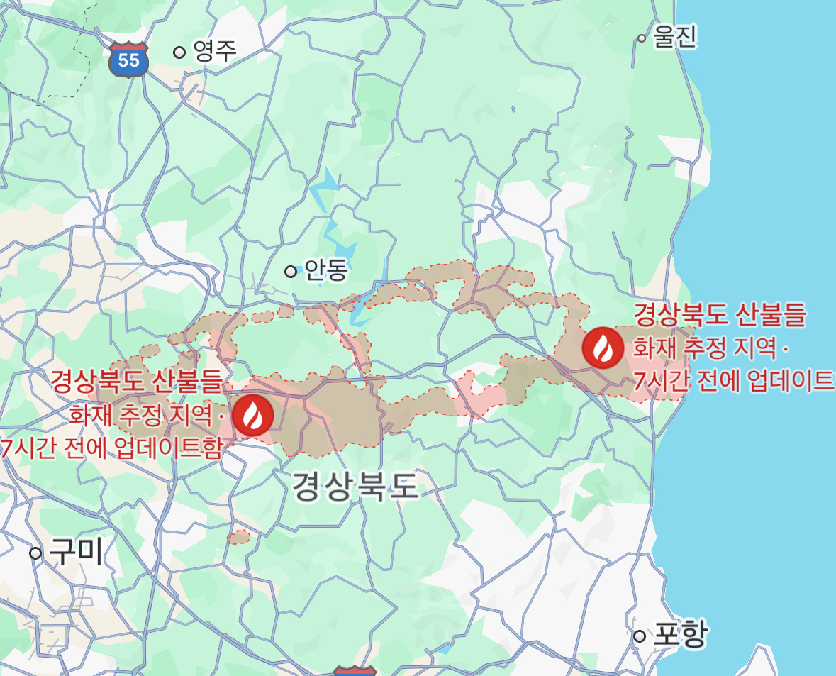 의성 안동 청송 산불 위치|원인|경북|진화율|산불 지도|지역|성묘2025년 3월 22일, 경상남도 산청군 일원에서 큰 산불이 발생한 가운데 경상북도 의성군에서도 세 곳에서 동시다발적으로