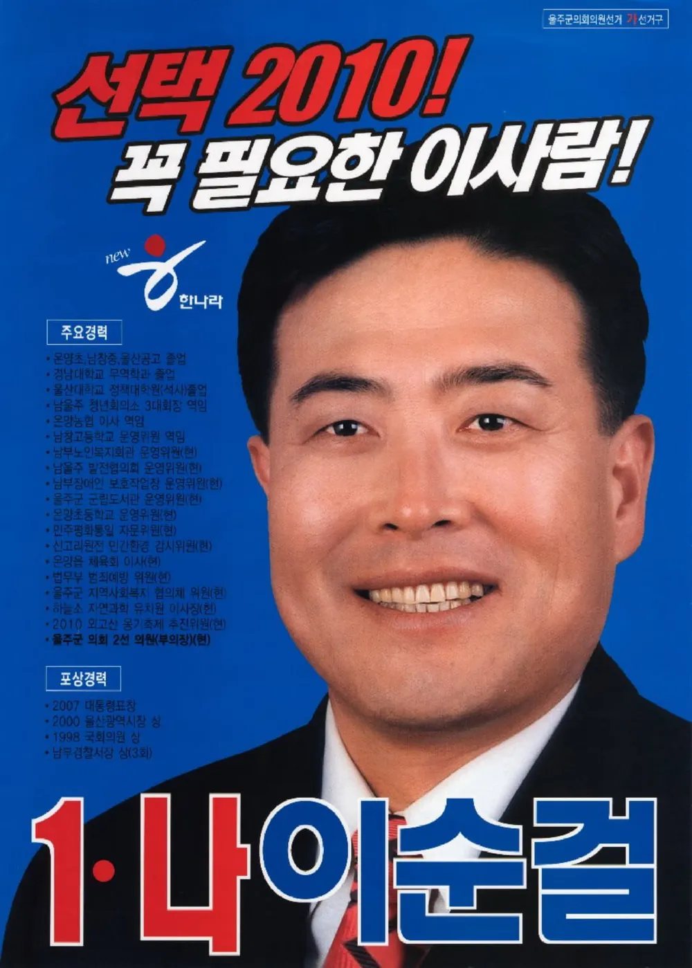 울산 울주 온양읍 / 무소속 / 당선 / 초선