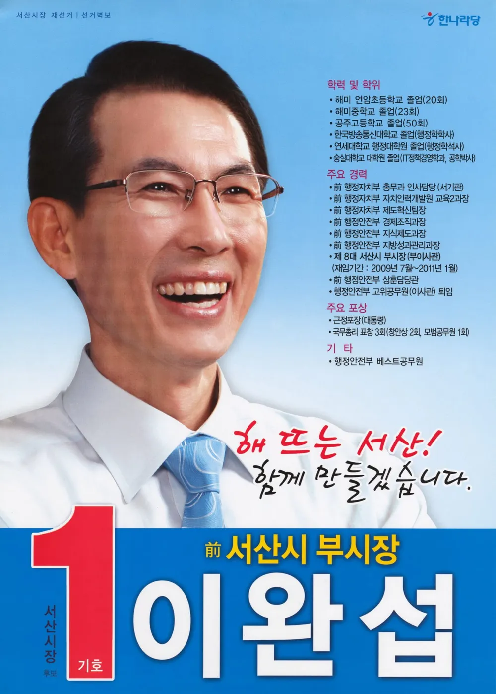 충남 서산시장 / 한나라당 / 당선 / 초선