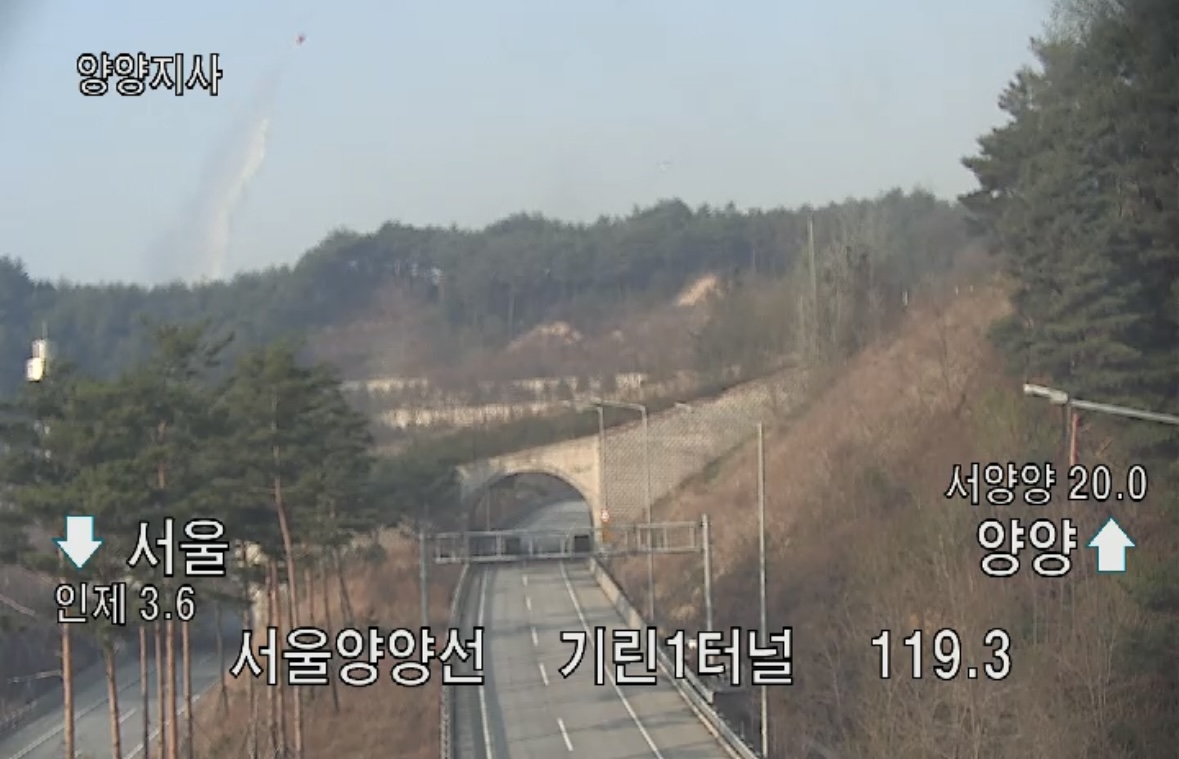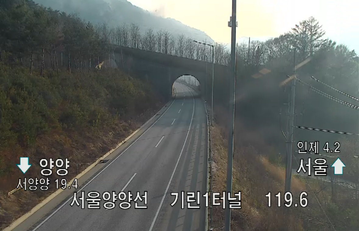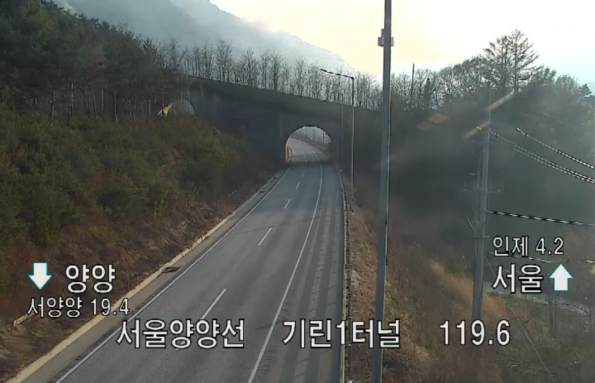 서울양양고속도로 내촌IC에서 양양TG까지 양방향 통행을 전면 통제하고, 모든 차량을 국도로 우회 중