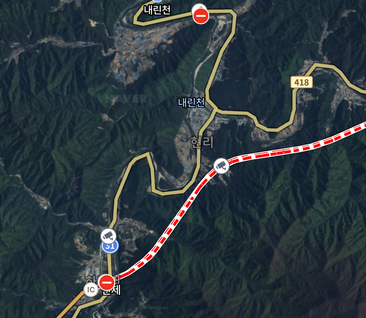서울양양고속도로 내촌IC에서 양양TG까지 양방향 통행을 전면 통제하고, 모든 차량을 국도로 우회 중