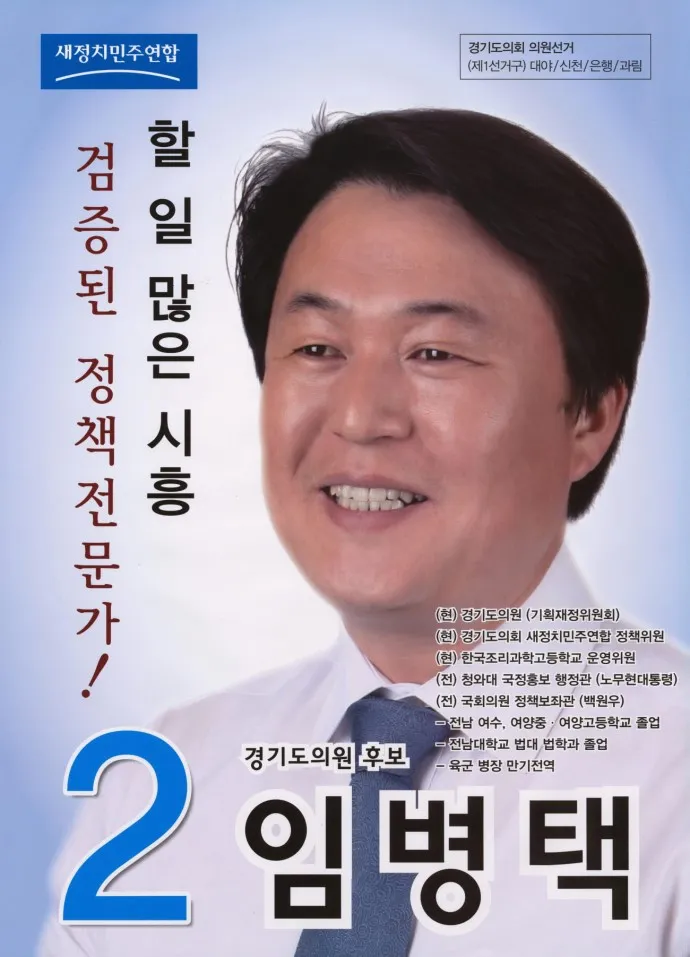 임병택 시장은 더불어민주당 소속으로 경기도 시흥시를 이끌고 있는 정치인입니다. 전라남도 여수 출신으로, 어린 시절 어려운 형편 속에서도 학업과 생계를 병행하며 자수성가한 삶을 살아왔습니다. 전남대학교 법학과에 진학한 후 시민운동에 참여하면서 정치 활동을 시작했으며, 참여정부 시절 청와대 행정관으로 근무하며 중앙정치 경험도 쌓았습니다. 이후 경기도의회 의원을 거쳐 2018년 전국 최연소 기초자치단체장으로 시흥시장에 당선되었고, 2022년 재선에 성공하며 시정 경험을 이어가고 있습니다. 임 시장은 “판을 바꾸는 게임체인저”를 자처하며 AI·바이오 융합도시와 해양레저도시라는 두 축을 중심으로 시흥시의 미래를 설계하고 있습니다. 대규모 바이오 투자 유치와 병원·인재양성 인프라 확충 등에서 가시적인 성과를 내며, 시흥을 수도권의 신성장 거점으로 탈바꿈시키고 있습니다. 다가오는 지방선거를 앞두고 그의 정치적 행보에도 큰 관심이 쏠리고 있습니다.