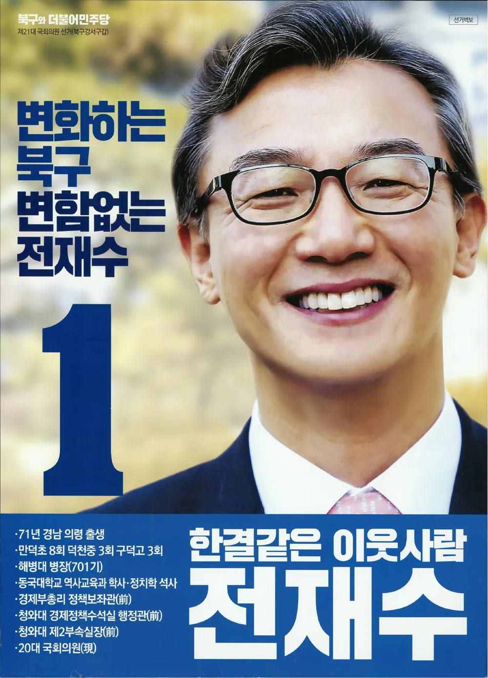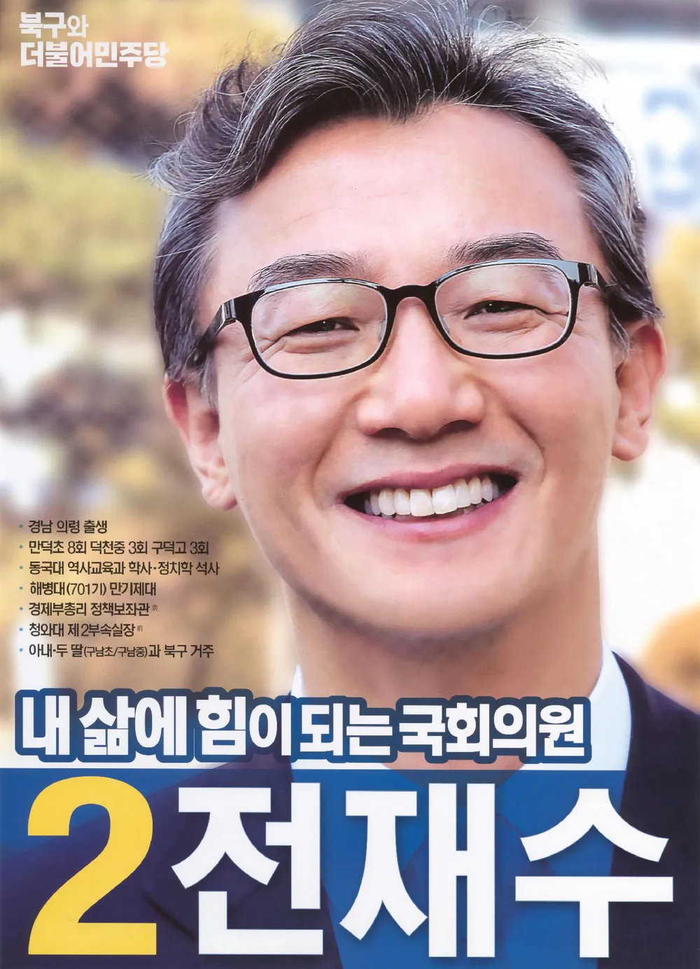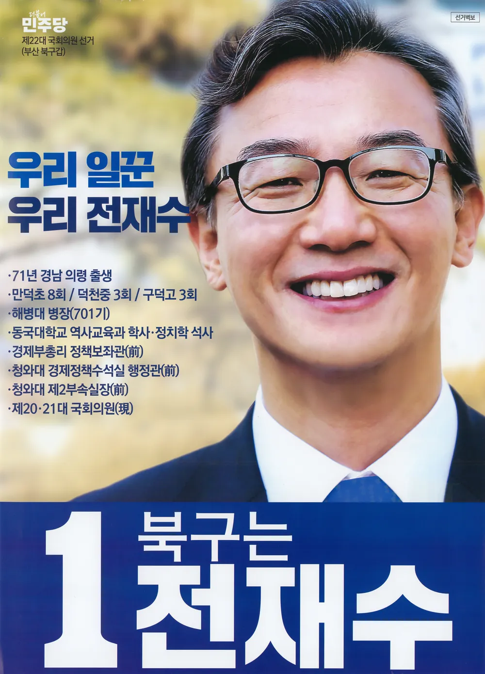 전재수 의원은 오랜 도전 끝에 지역 유권자의 신뢰를 얻어 부산에서 더불어민주당의 상징적 존재로 자리매김한 정치인입니다. 성실한 의정활동과 지역 밀착형 공약 이행으로 신뢰를 쌓았고, 원칙 있는 발언과 책임 있는 행동으로 정치적 무게감을 키워왔습니다. 특히 부산 유일의 민주당 국회의원으로서 험지에서 당의 가치를 지키며 꾸준한 존재감을 발휘하고 있습니다. 중앙 정치와 지역 현안을 모두 아우르는 균형 잡힌 시각은 그가 가진 강점 중 하나입니다. 앞으로도 전 의원은 국민과 지역을 잇는 가교로서, 진정성 있는 정치인의 길을 이어갈 것으로 기대됩니다.