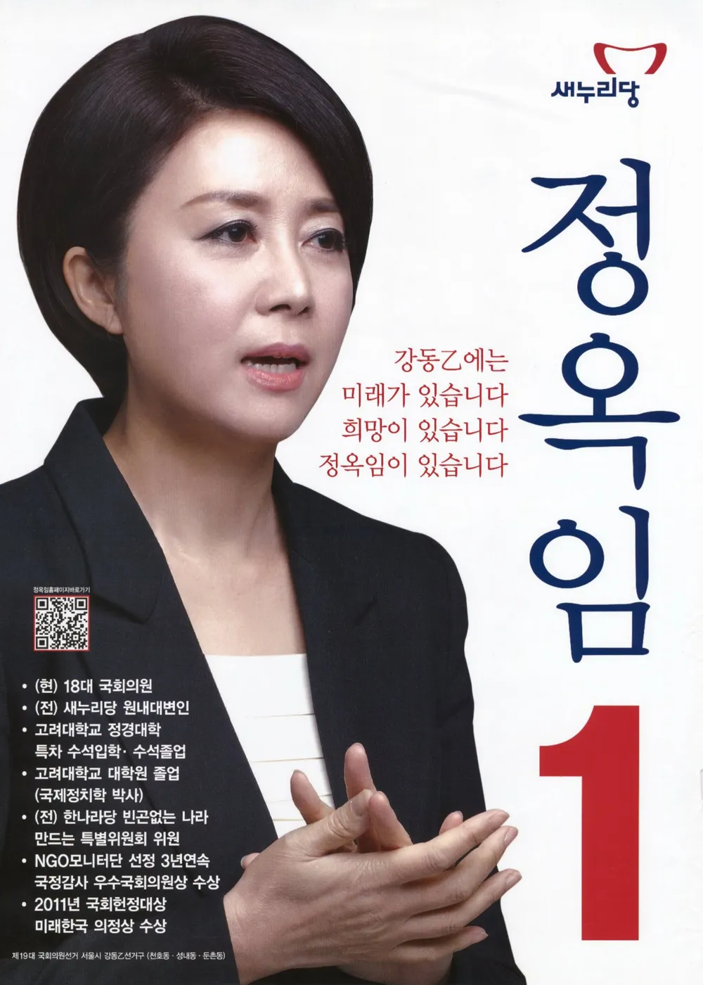 2012년에는 정당 정치에 본격적으로 뛰어들며 지역구 출마에 도전합니다. 제19대 국회의원 선거에서 서울 강동구 을 선거구에 새누리당 후보로 출마하였습니다. 이 과정에서 같은 당의 현역 의원이었던 김충환과의 당내 경선에서 승리하며 주목을 받았지만, 본선에서는 민주통합당 심재권 후보에게 밀려 낙선의 고배를 마셨습니다. 이후에도 정치적 활동을 이어가며 다양한 공적 직함을 맡게 됩니다.