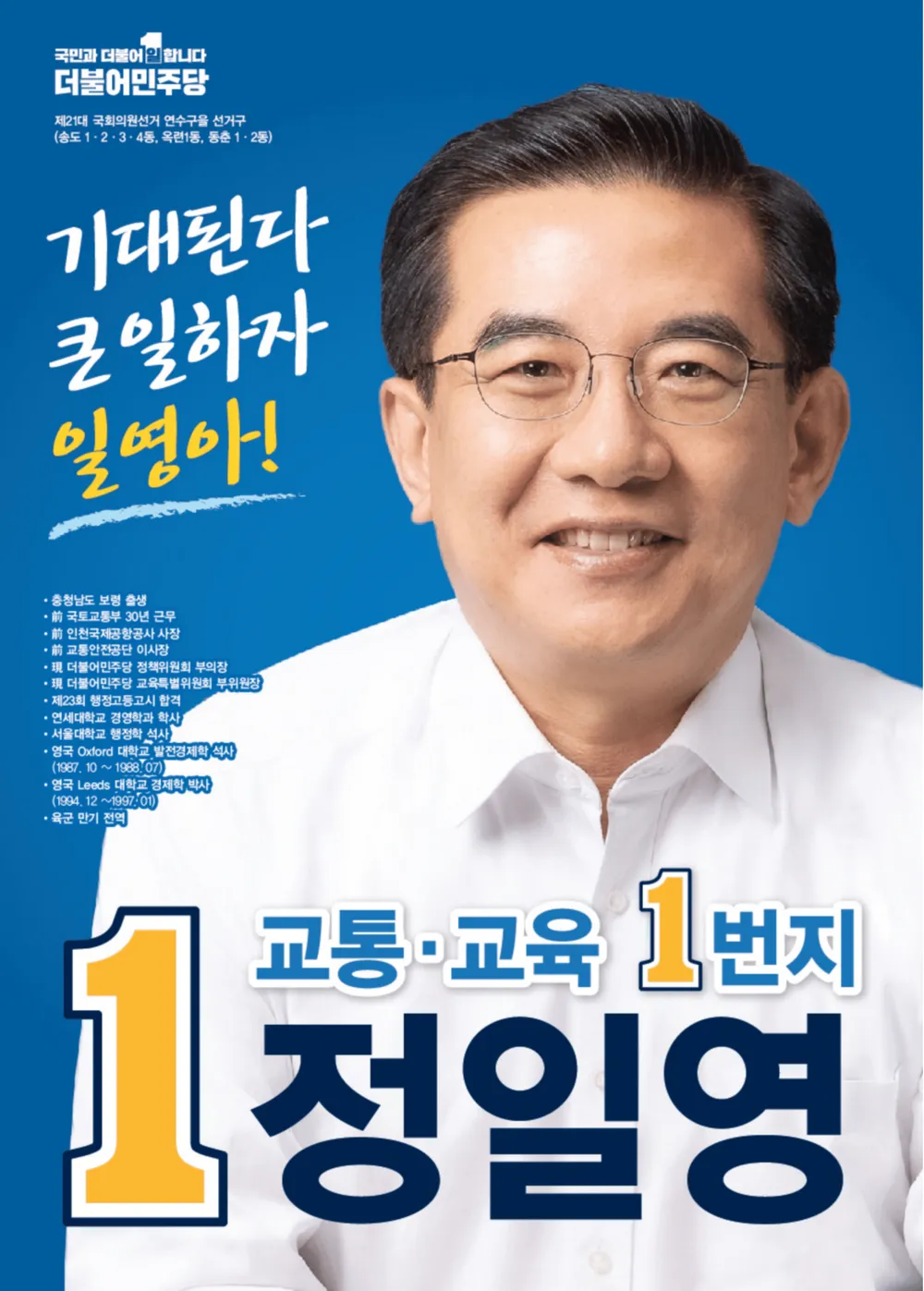 총선에서는 보수 진영 후보인 민경욱과 접전을 벌였으며, 진보 표의 분산 우려 속에서도 2.3%포인트 차이로 당선되어 제21대 국회의원이 되었습니다. 당시 민경욱 후보가 제기한 부정선거 의혹에 대해 정일영 의원은 “재검표도 자신 있다”며 당당한 태도를 보였고, 연수구 주민들이 해당 주장에 대해 반감을 갖고 있다고 언급하기도 했습니다.