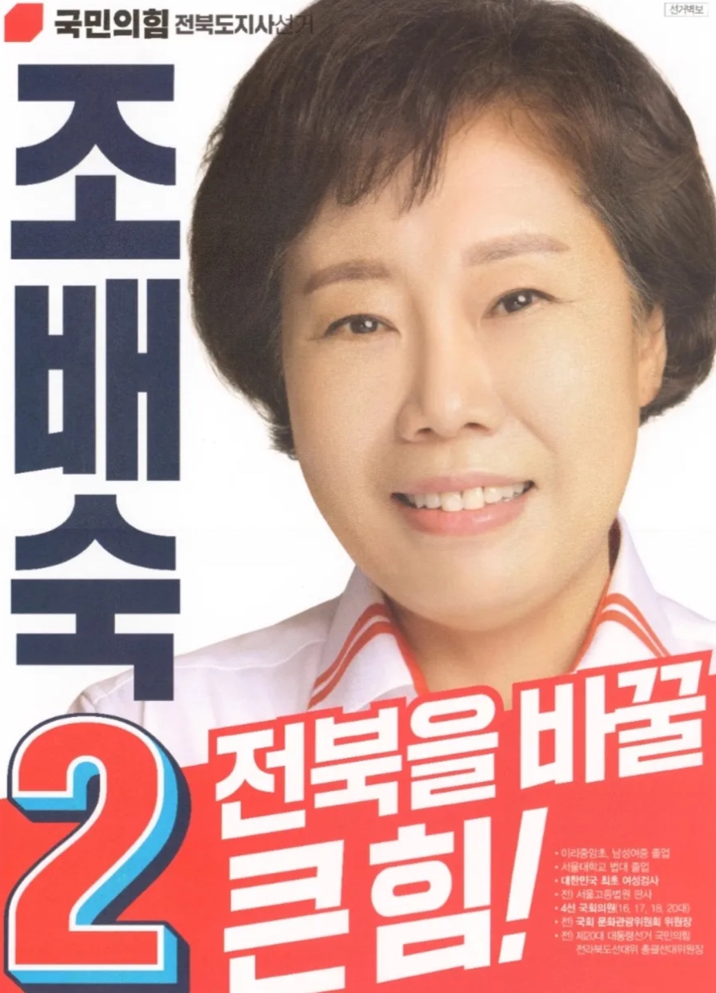 조배숙 의원은 대한민국의 법조인 출신 정치인으로, 제16대부터 제22대까지 5선 국회의원으로 활동한 인물입니다. 1956년 전라북도 이리시(현 익산시)에서 태어난 조배숙은 경기여자고등학교와 서울대학교 법과대학을 졸업한 후, 1980년 22회 사법시험에 합격하여 박숙경과 함께 대한민국 최초의 여성 검사 중 한 명으로 임용되었습니다. 이후 판사와 변호사로 활동하며 법조계에서 경력을 쌓았습니다.