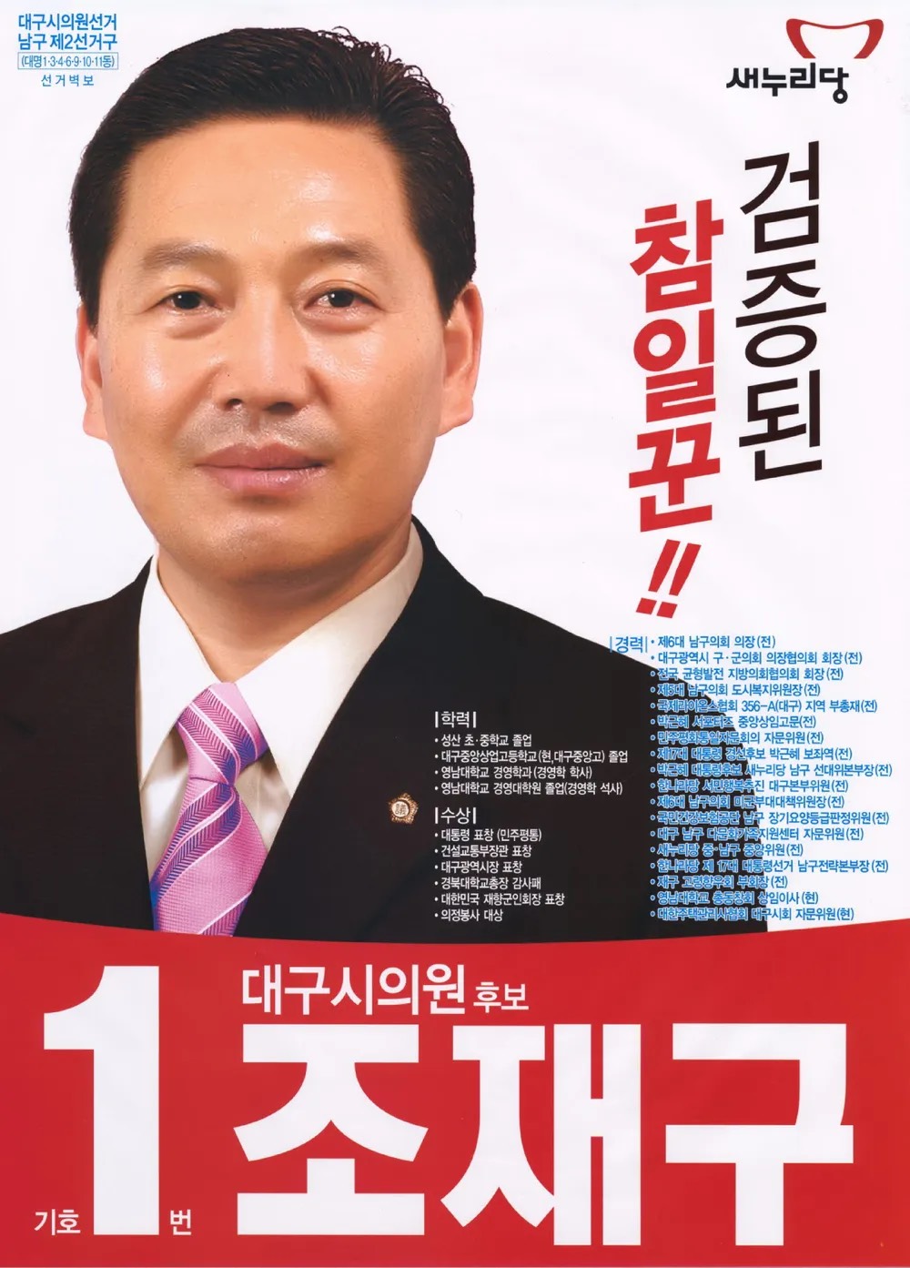 조재구 대구 남구청장 프로필|나이|고향|소속 정당|학력|재산|후보