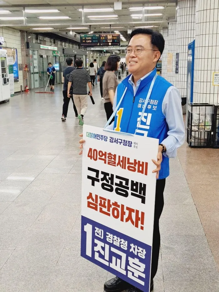 정계 진출은 2023년 8월, 더불어민주당 입당으로 본격화되었습니다. 그리고 불과 한 달 뒤인 9월 4일, 서울 강서구청장 보궐선거에서 민주당의 전략공천을 받아 후보로 나서게 되었습니다. 실제로 진 후보는 2004년부터 강서구에 거주하며 자녀들을 강서구 관내 초·중·고등학교에 진학시킨 지역민이기도 했습니다.