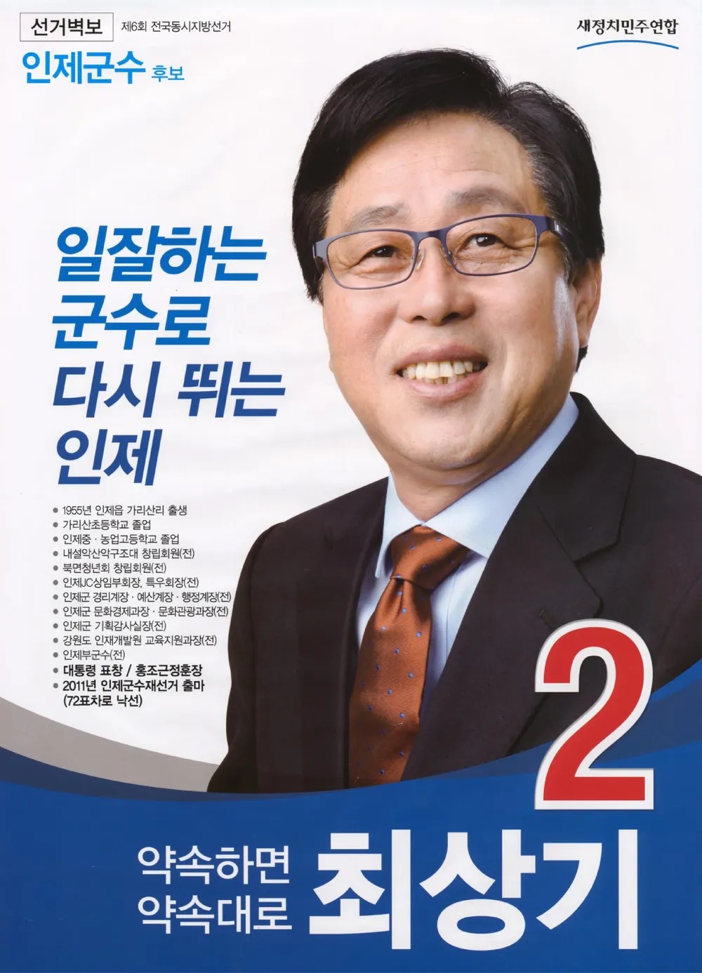 최상기 인제군수 프로필|소속정당|나이|학력|가족 부인|재산|후보